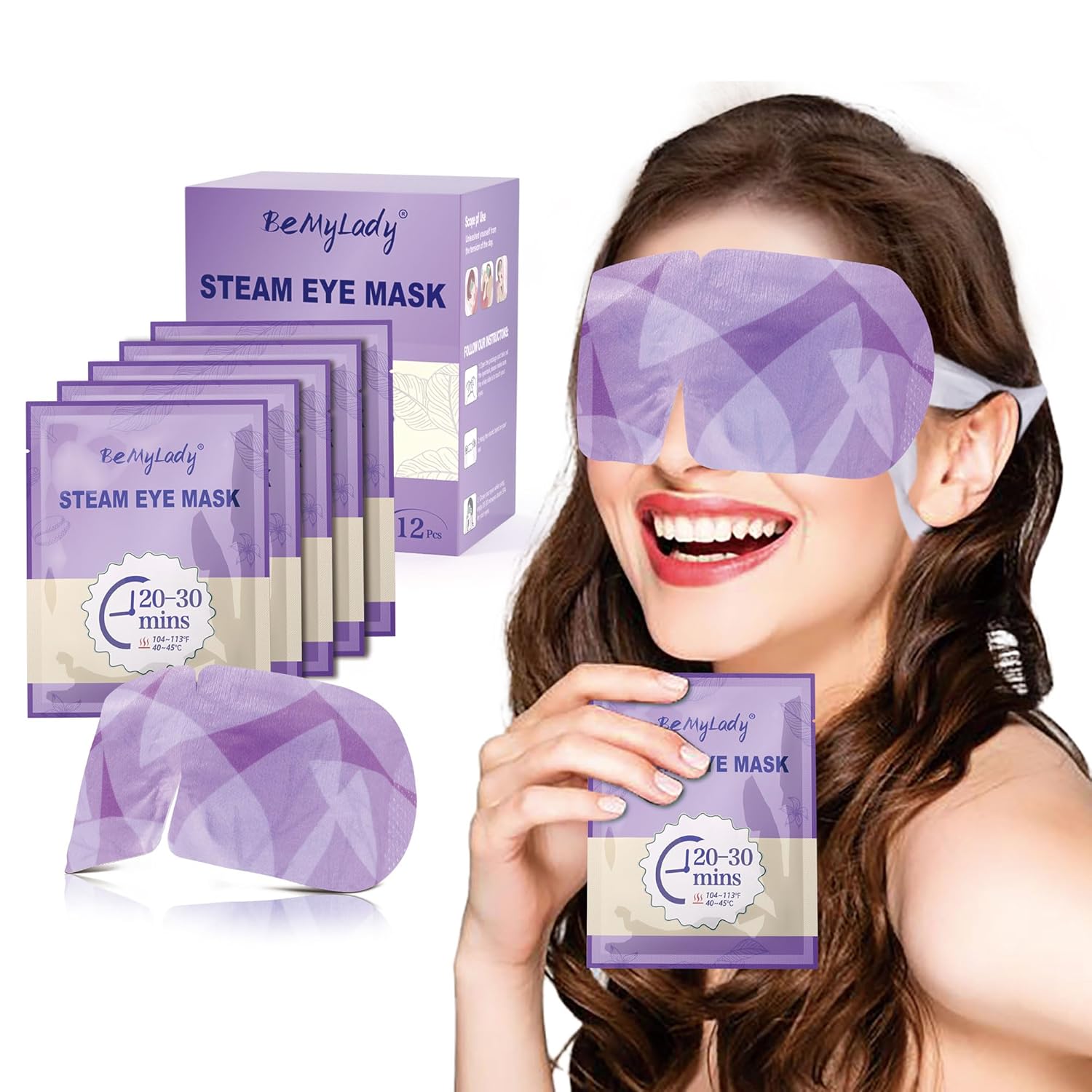 12 Pack Steam Lavender Eye Mask for Dry Eyes, Disposable Heated Eye Mask,Warm Eye Compress for Dark Circles, Spa Eye Mask for Puffy Eyes Mask,Moist Self Heating Pads for Tired Eyes