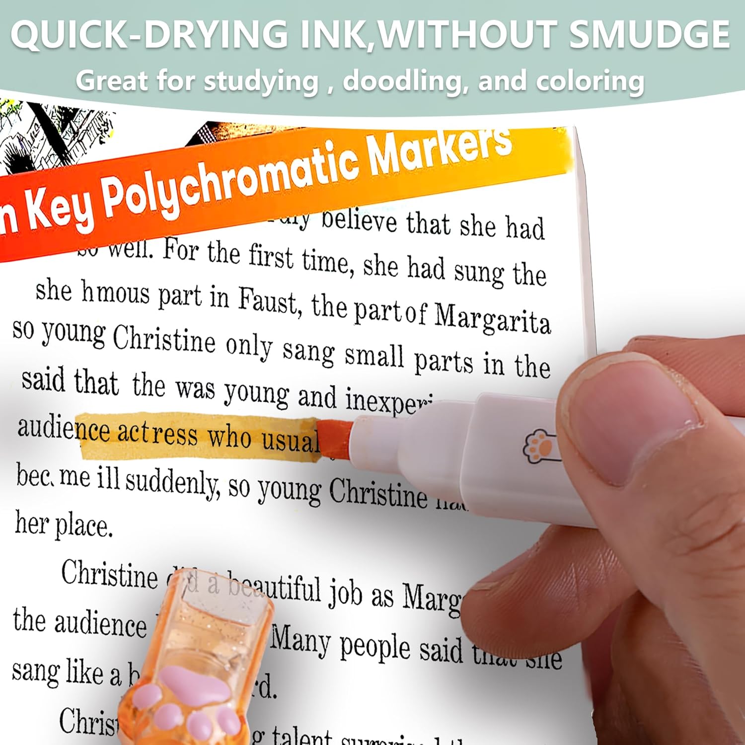 Double-headed Highlighter Markers, 6Pcs of 12 Flat Heads, Cute Light Color Eye Protection Highlighters, Bright and Vintage Markers for School Office Supplies