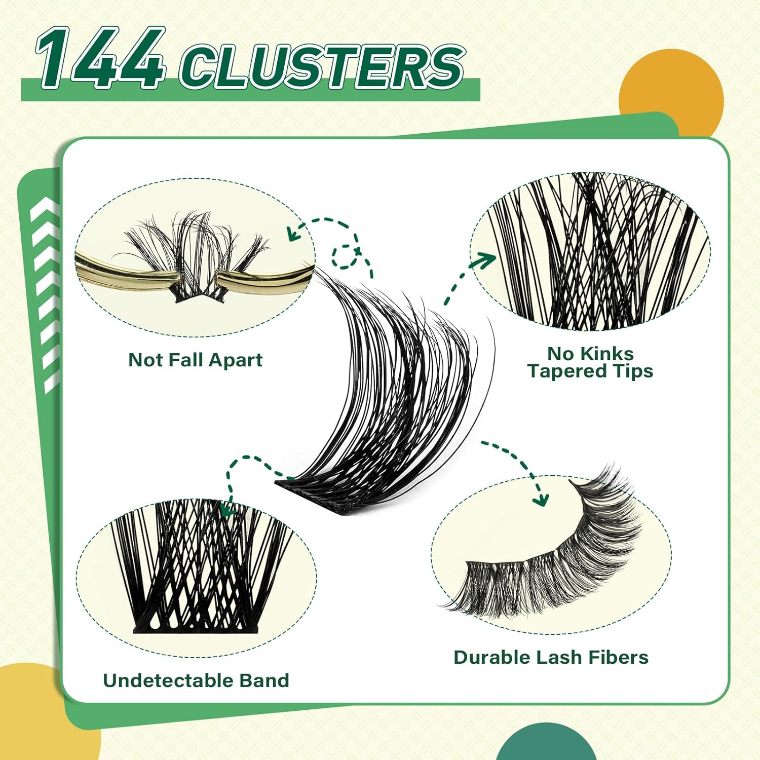 - 【144pcs High Quality Cluster Lashes】The simulated eyelash material is more realistic and will not feel plastic, comfortable and non-irritating on the eyes, allowing you to easily maintain a perfect makeup all day long.