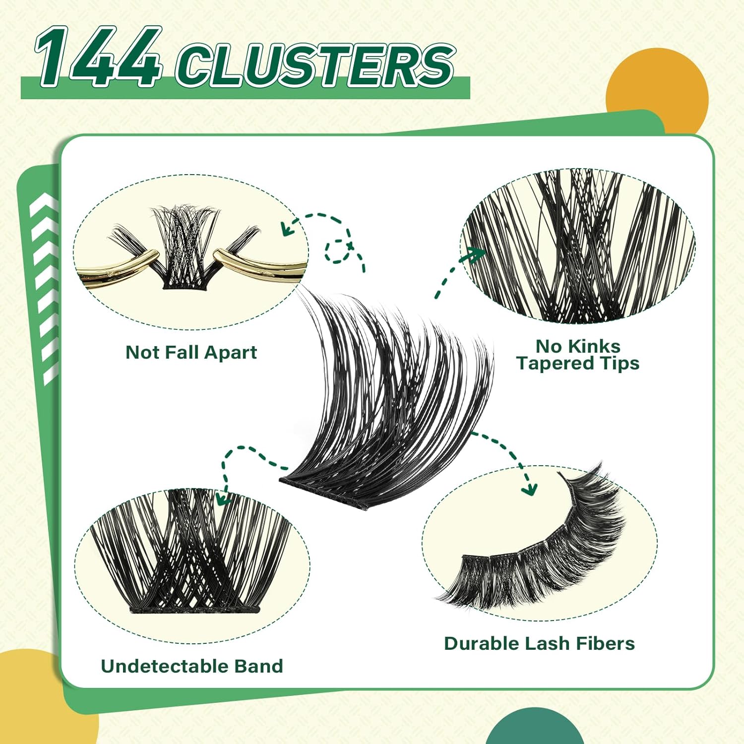 - 【144pcs High Quality Cluster Lashes】The simulated eyelash material is more realistic and will not feel plastic, comfortable and non-irritating on the eyes, allowing you to easily maintain a perfect makeup all day long.