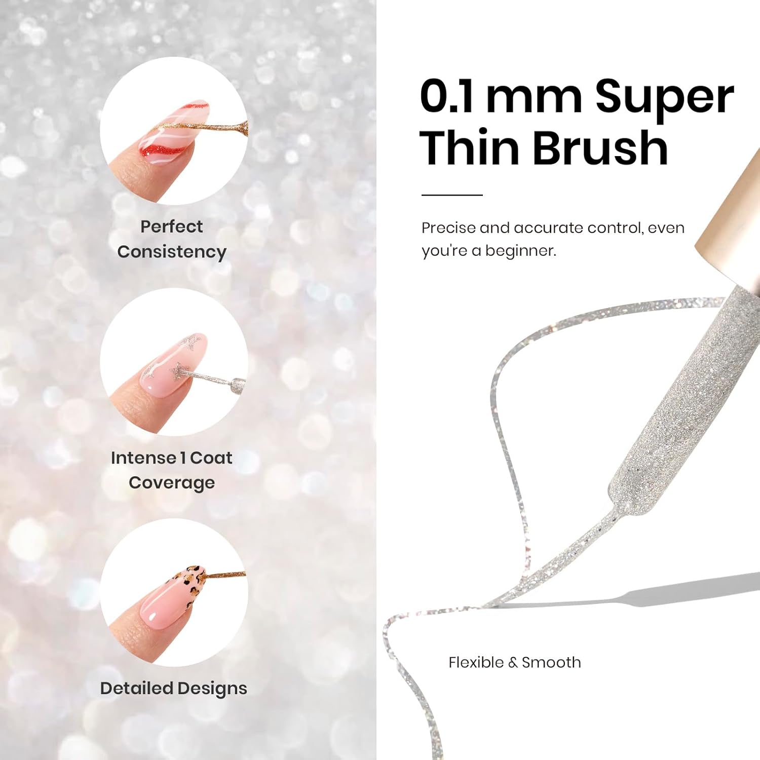 - Bottled Thin Brush: Our gel nail polish comes with a built-in thin brush, perfect for beginners, you can create precise, professional nail art results. Tip: If the brush bends, soak it in hot water for 10 seconds and it will be back to normal in no time!