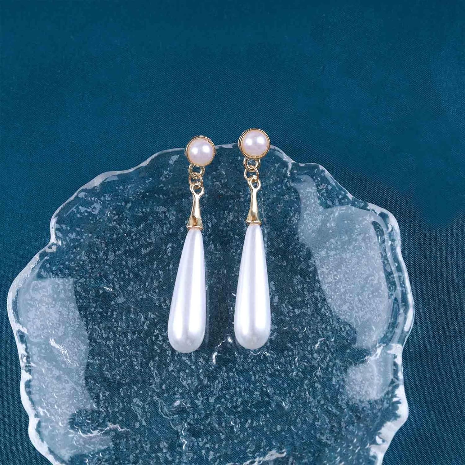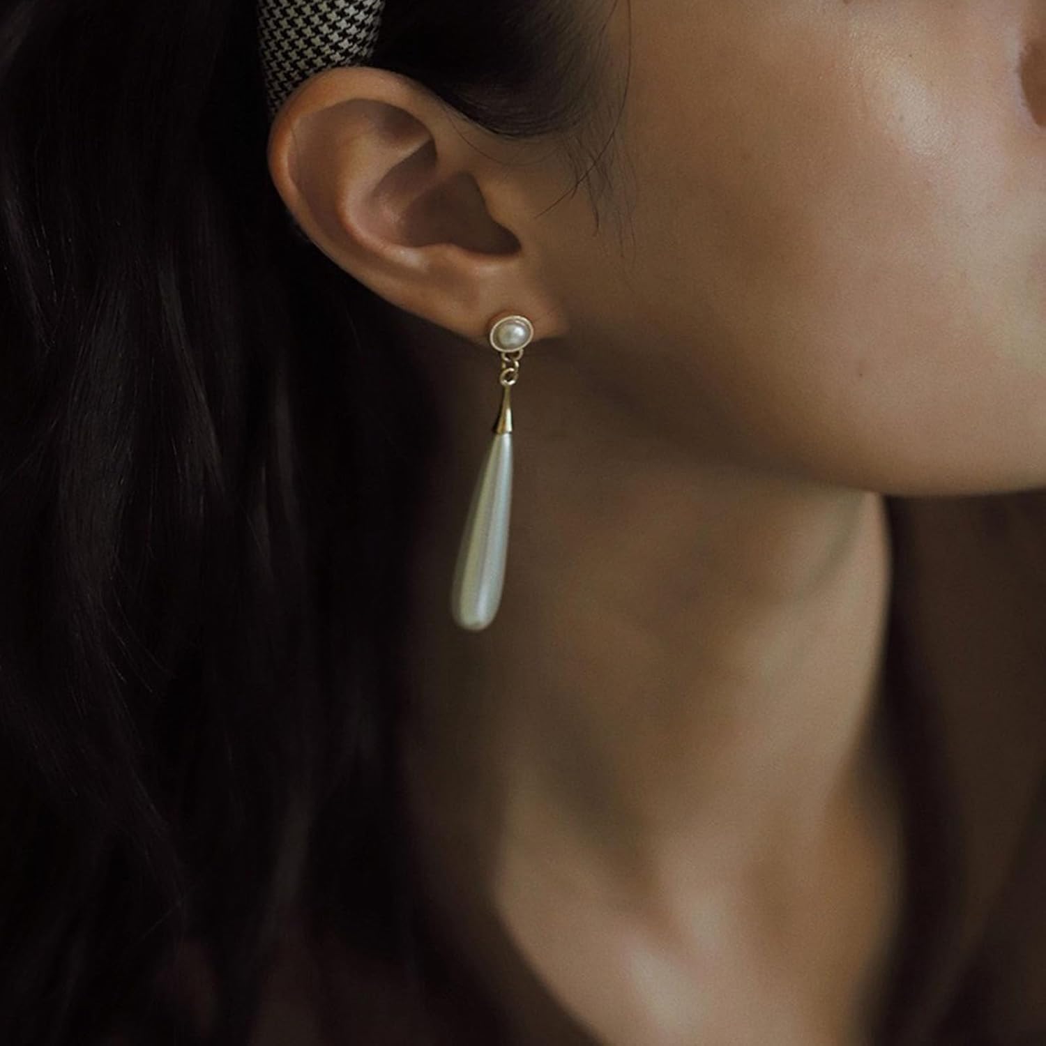 Boho Teardrop pearl Earrings Thin pearl Drop Earrings Gold Long pearl Dangle Earrings Vintage pearl Earrings Jewelry for Women and Girls