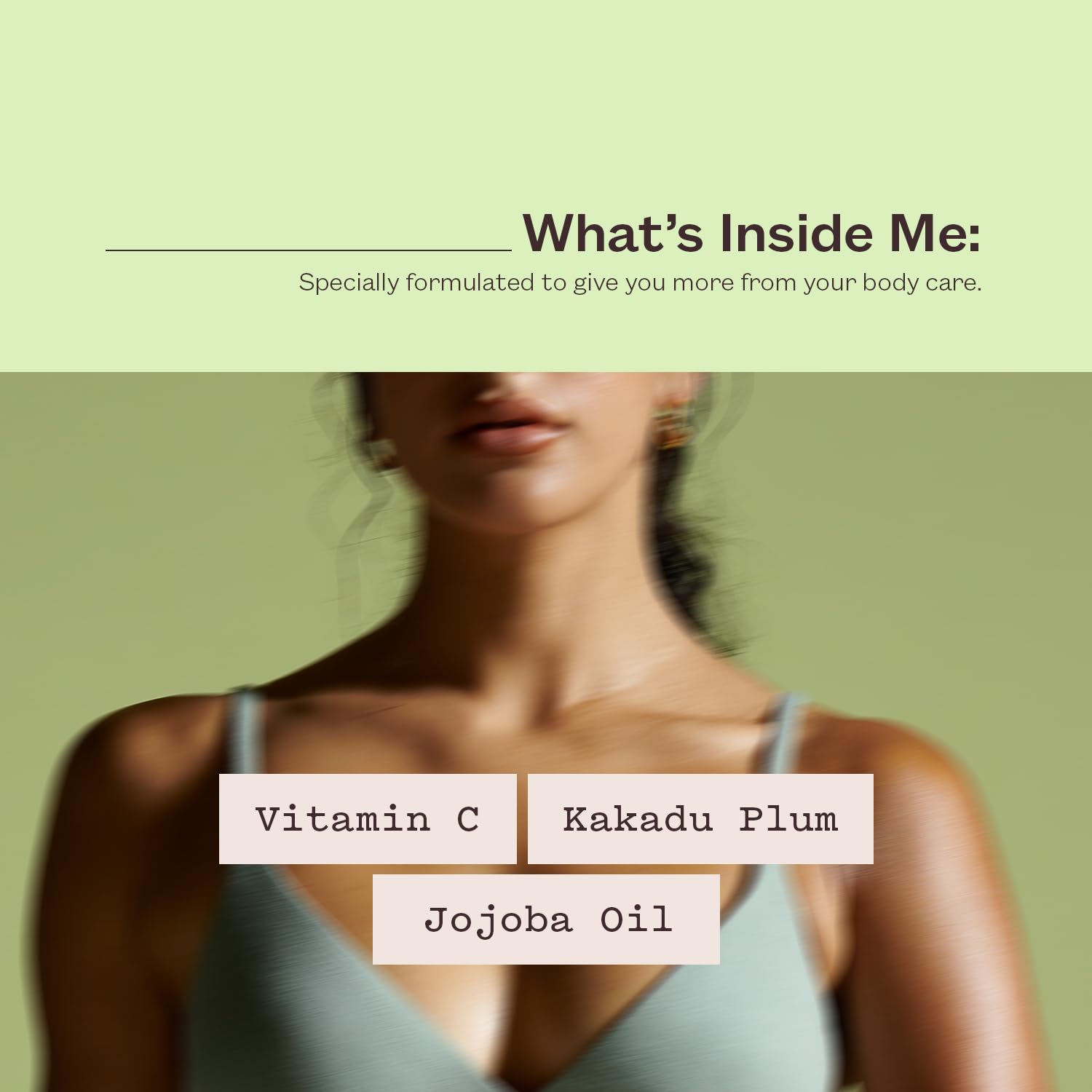 - Brightens and evens skin tone: This lightweight, creamy body lotion is enriched with Vitamin C and Kakadu Plum to visibly brighten dark spots and promote an even, glowing complexion. It helps reduce the appearance of marks and supports radiant skin all over.