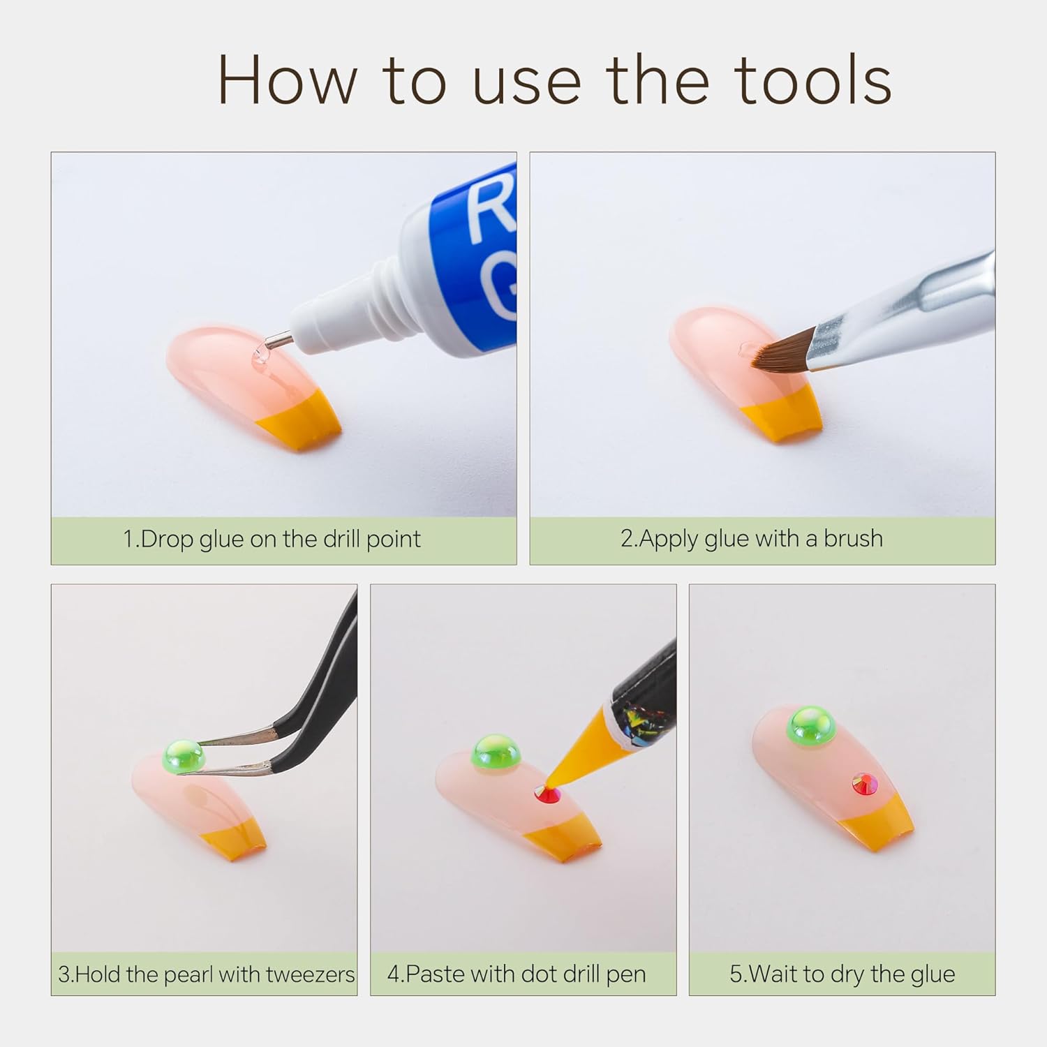 - Useful tools - These pearls and rhinestones have a flat back, which is excellent for easy placement.and you can pick up any large or small pearls and rhinestones with the crayons we bring along. And use the brush to smooth out the Gel, these tools will work very well