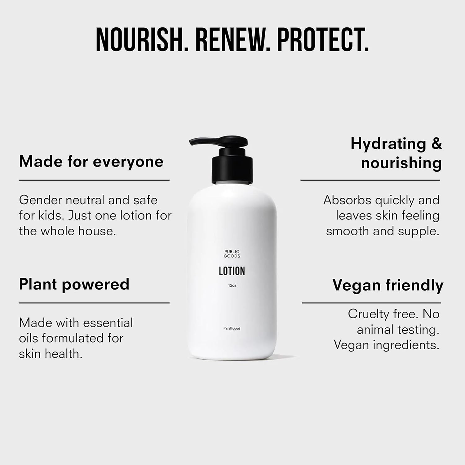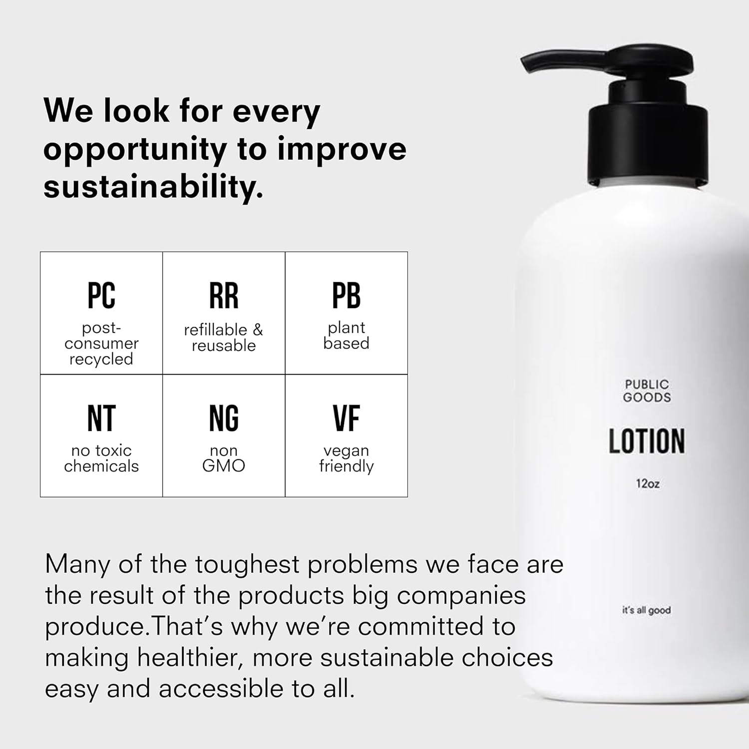 Public Goods Body & Hand Lotion for Women & Men | Natural Moisturizing Daily Lotion for Dry & Itchy Skin | Paraben & Sulfate Free | Made with Organic Essential Oils | Made in Canada | 12 Fl Oz Bottle