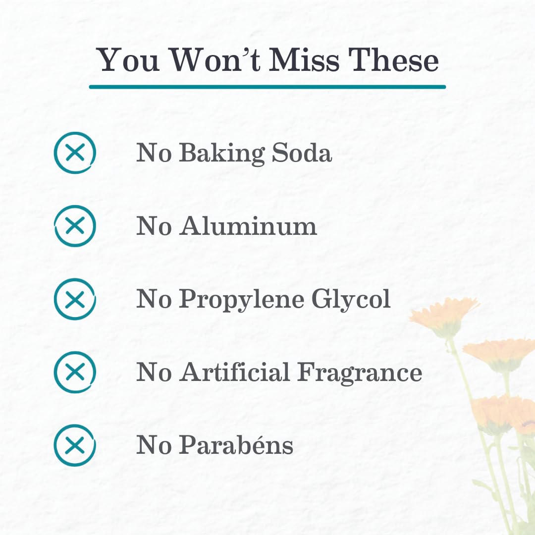 - NO WORRISOME CHEMICALS: Earth Mama Deodorant contains organic ginger, lime and calendula and is free from aluminum, propylene glycol, artificial fragrance, or parabens, as well as potentially irritating baking soda.