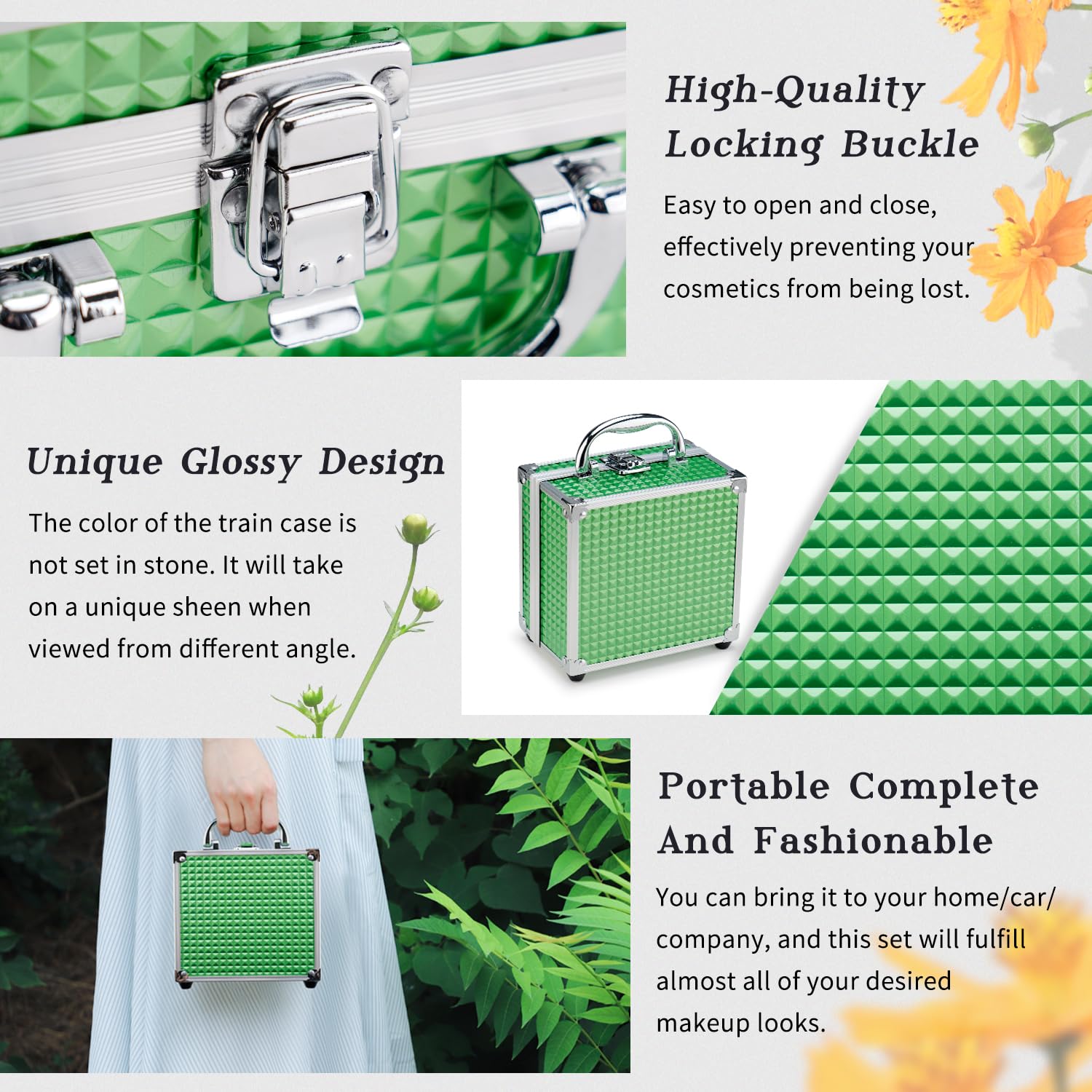 - 【Multi-Functional Train Case】 Even after you've used up the makeup treasures within, this sturdy cosmetic train case finds a new purpose. Store small essentials and keep your space organized with a touch of elegance.