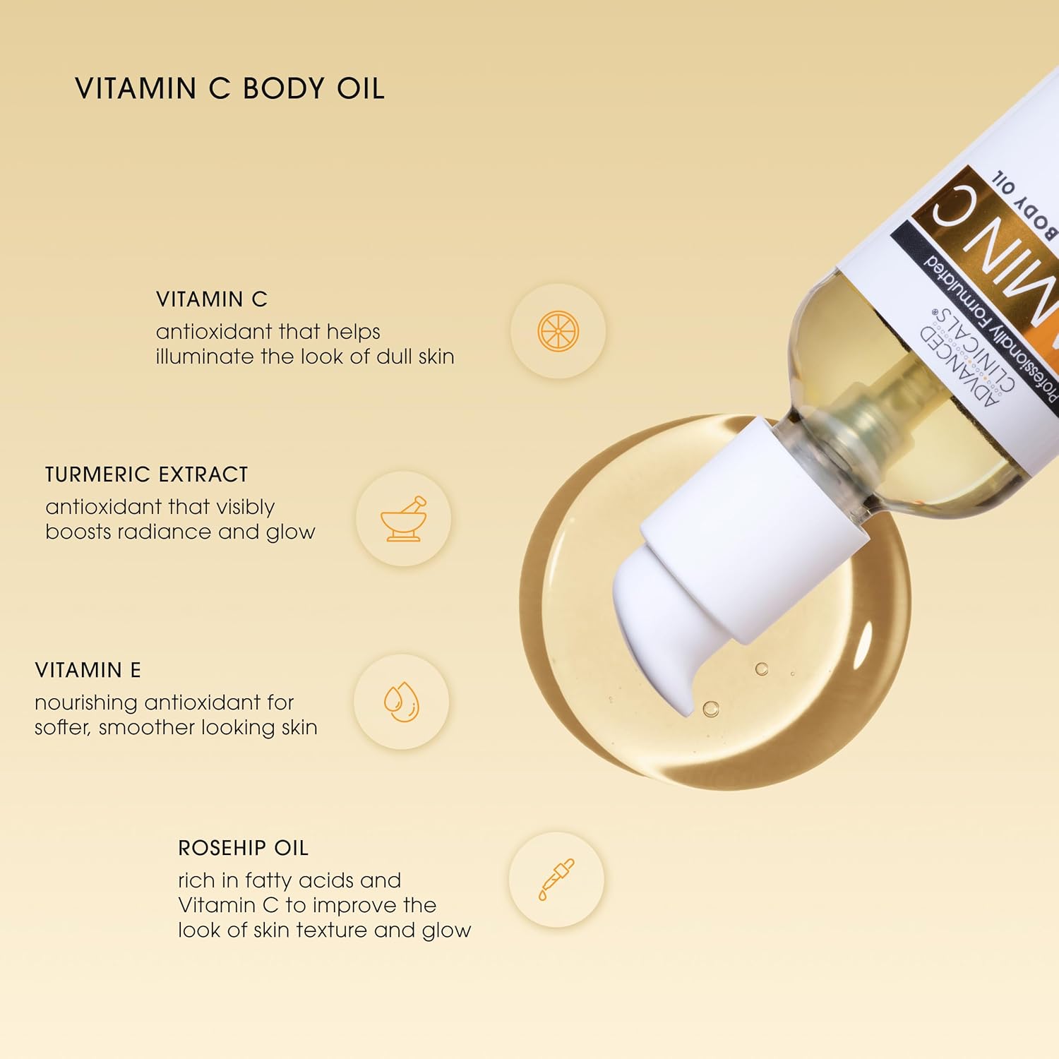 - VITAMIN C BODY OIL FOR SILKY, SMOOTHER LOOKING SKIN - This luxurious body oil glides over skin to help lock in moisture and visibly smooth texture. Skin feels nourished, supple, and hydrated after each use. Ideal for anyone who is looking to enhance their skincare beauty routine.
