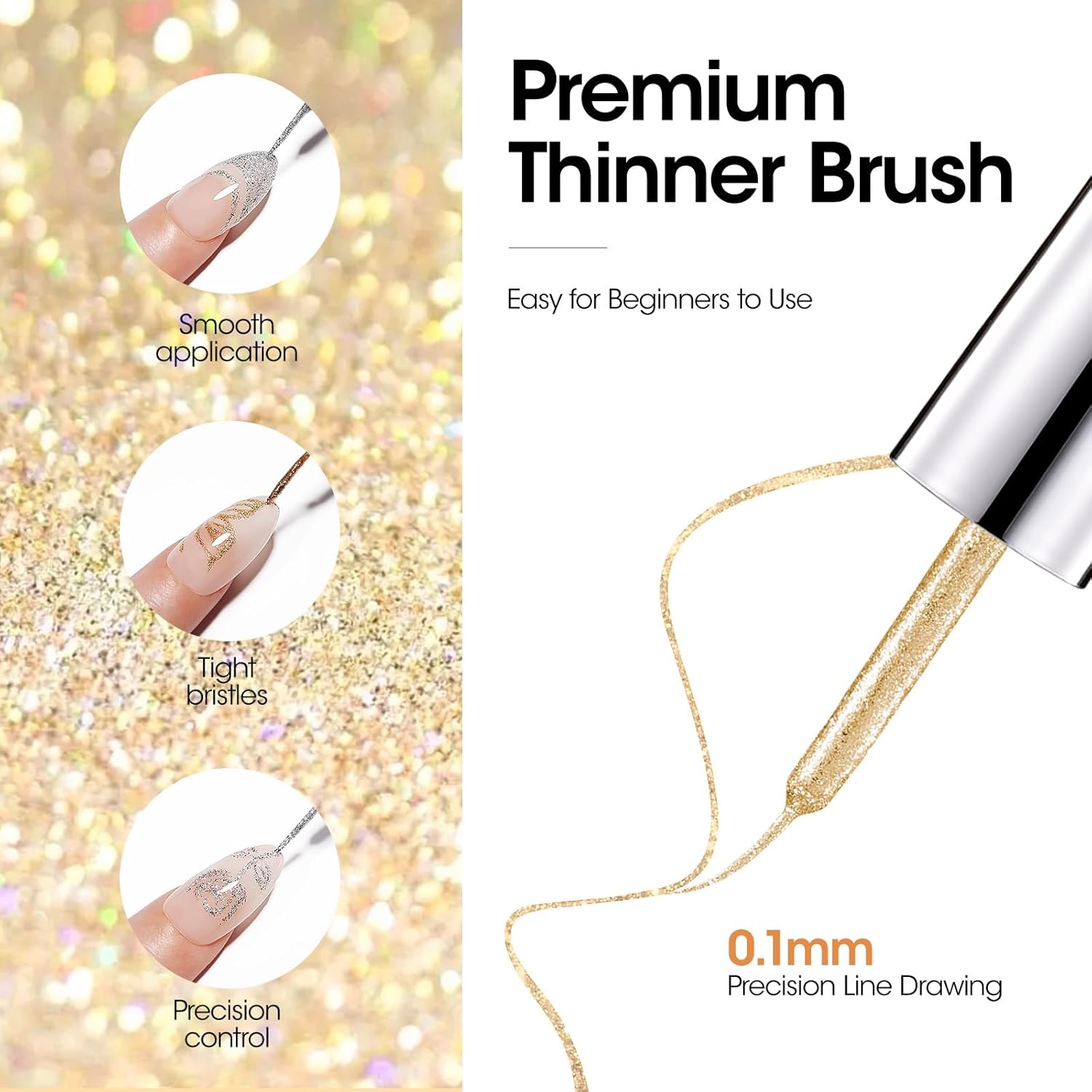 - Trendy Christmas Day Nail Art Kit: Gold and Silver liner glitter gel nail polish is a must-have manicure for holidays, perfect for trendy squiggly lines, french lines and swirl manicures, making you create fashionable nail design. Get more choice to diy your manicure with each 10ml/0.33oz large bottle