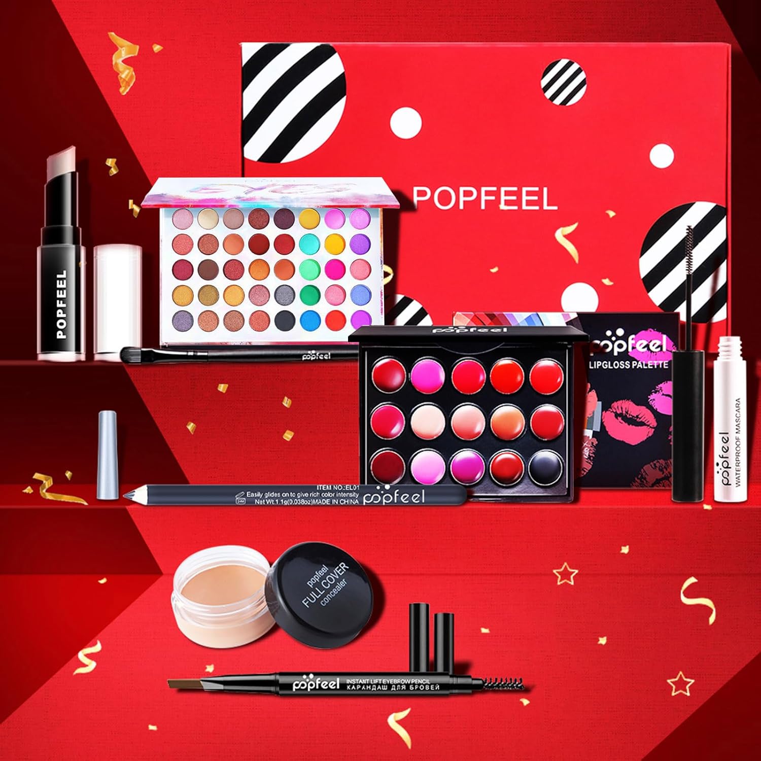 - 【COSMETIC SET】 This product is a multi-color makeup set, including lip gloss, multi-color eyeshadow palette, concealer, eyeliner, mascara, etc., giving you unlimited choices, whether it is casual makeup or exaggerated makeup, you can use this makeup bag Experiment with different makeup looks.