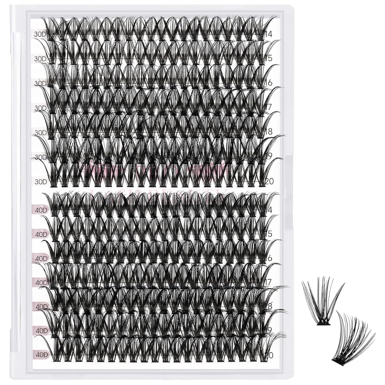 280 Pcs Individual Lashes 30D+40D Mixed Lash Clusters 14 Rows Cluster Lashes that Look Like Eyelash Extensions DIY Lash Extension Self Application At Home (30+40-D-14-20mix)