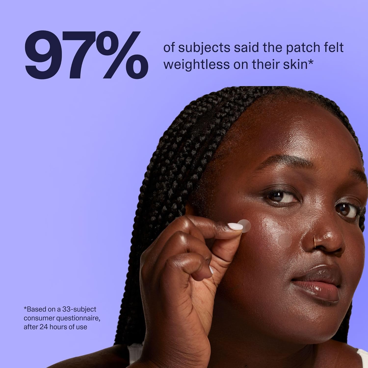 - RESULTS – 97% said the patch felt weightless on their skin and 100% said the patch did not leave their skin feeling dry after 24 hrs of use, and 88% said they saw results after 8 hours of wear *Based on a 33-subject consumer questionnaire