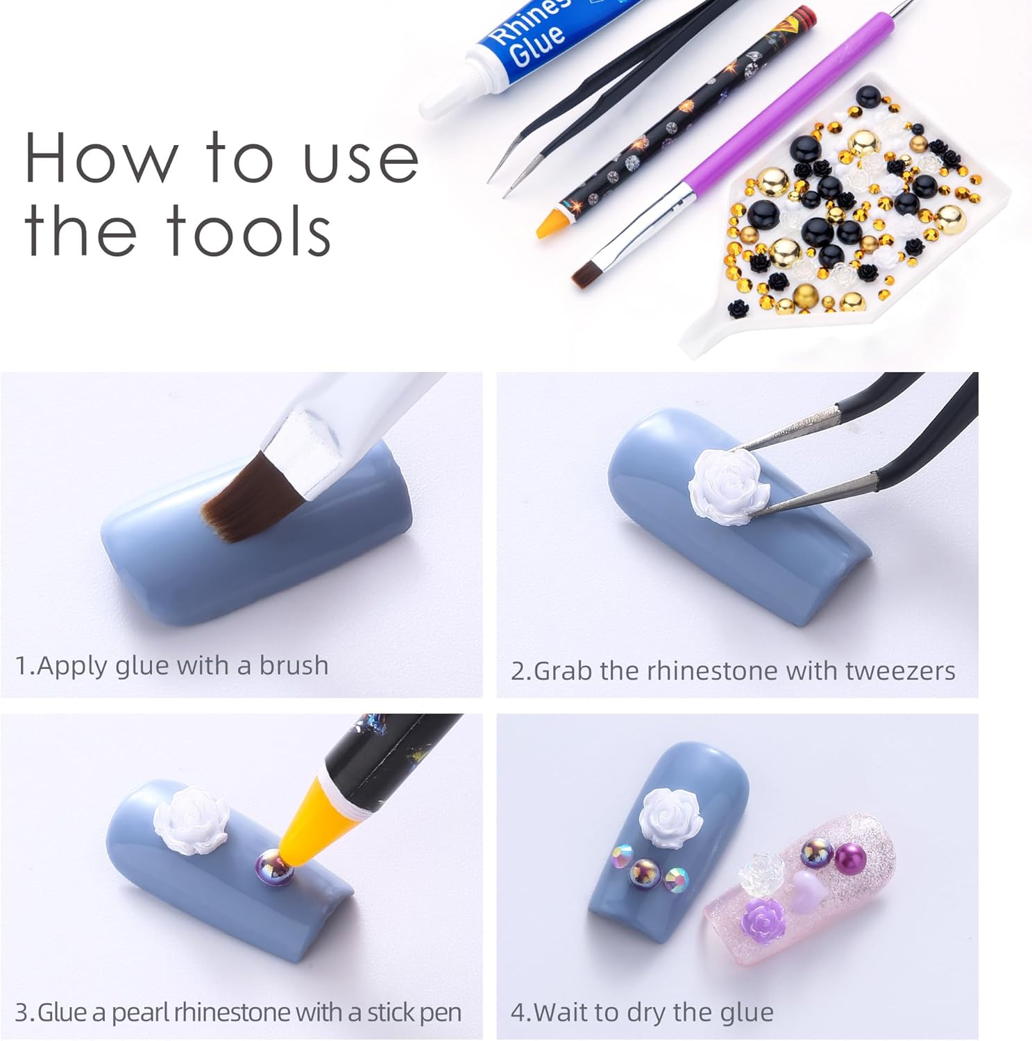 - Useful tools - These pearls and rhinestones have a flat back, which is excellent for easy placement.and you can pick up any large or small pearls and rhinestones with the crayons we bring along. And use the brush to smooth out the Gel, these tools will work very well