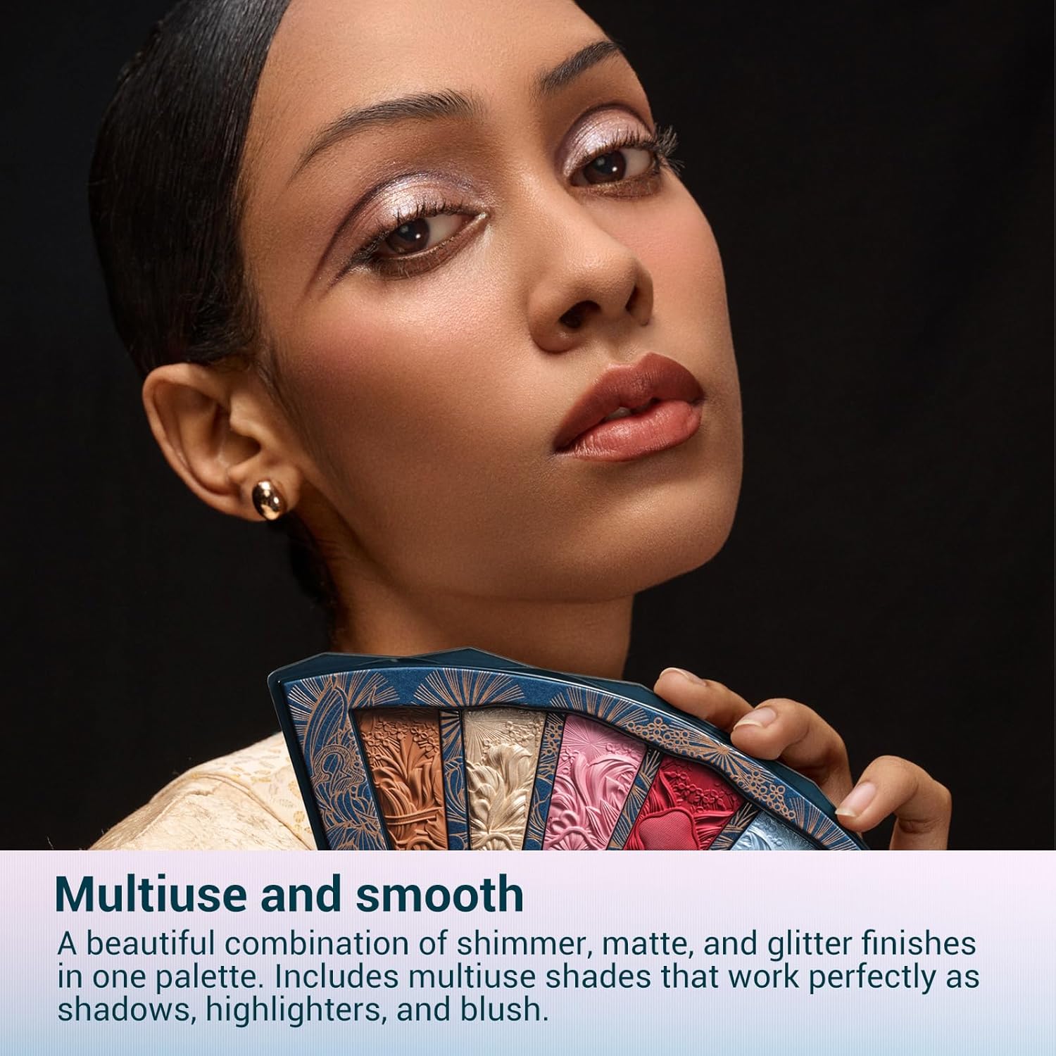 - Multiuse and smooth: A beautiful combination of shimmer, matte, and glitter finishes in one palette. Includes multiuse shades that work perfectly as shadows, highlighters, and blush. 100% talc and paraben free.