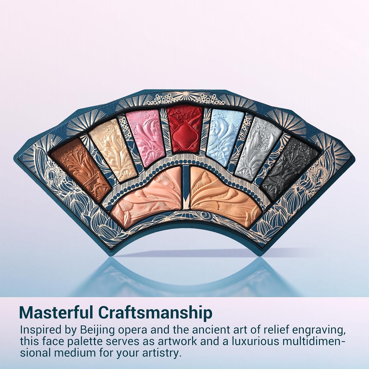 - Masterful Craftsmanship: Inspired by Beijing opera and the ancient art of relief engraving, this face palette serves as artwork and a luxurious multidimensional medium for your artistry.