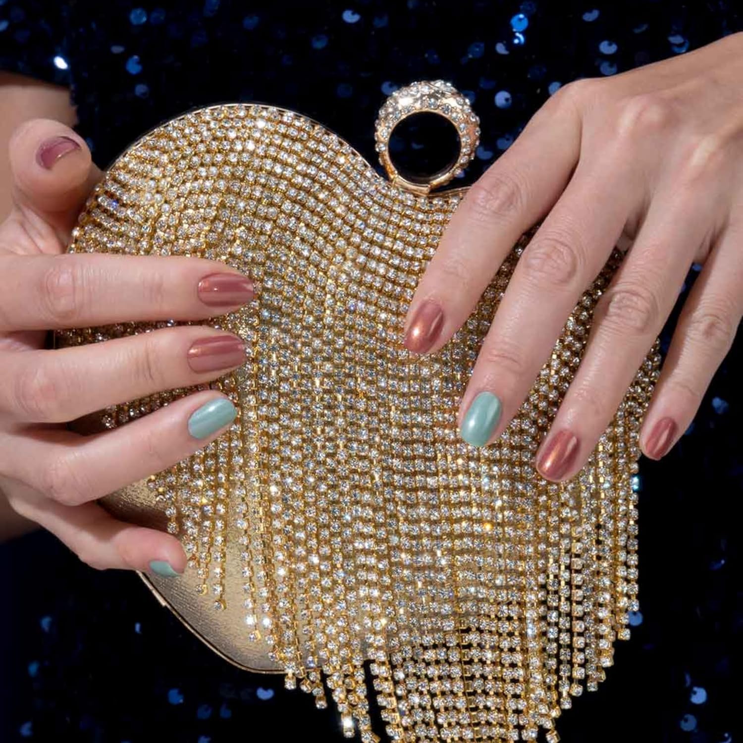 - essie gel couture multi-faceted a softened rose longwear vegan nail polish with smooth gold pearl and a shimmer finish