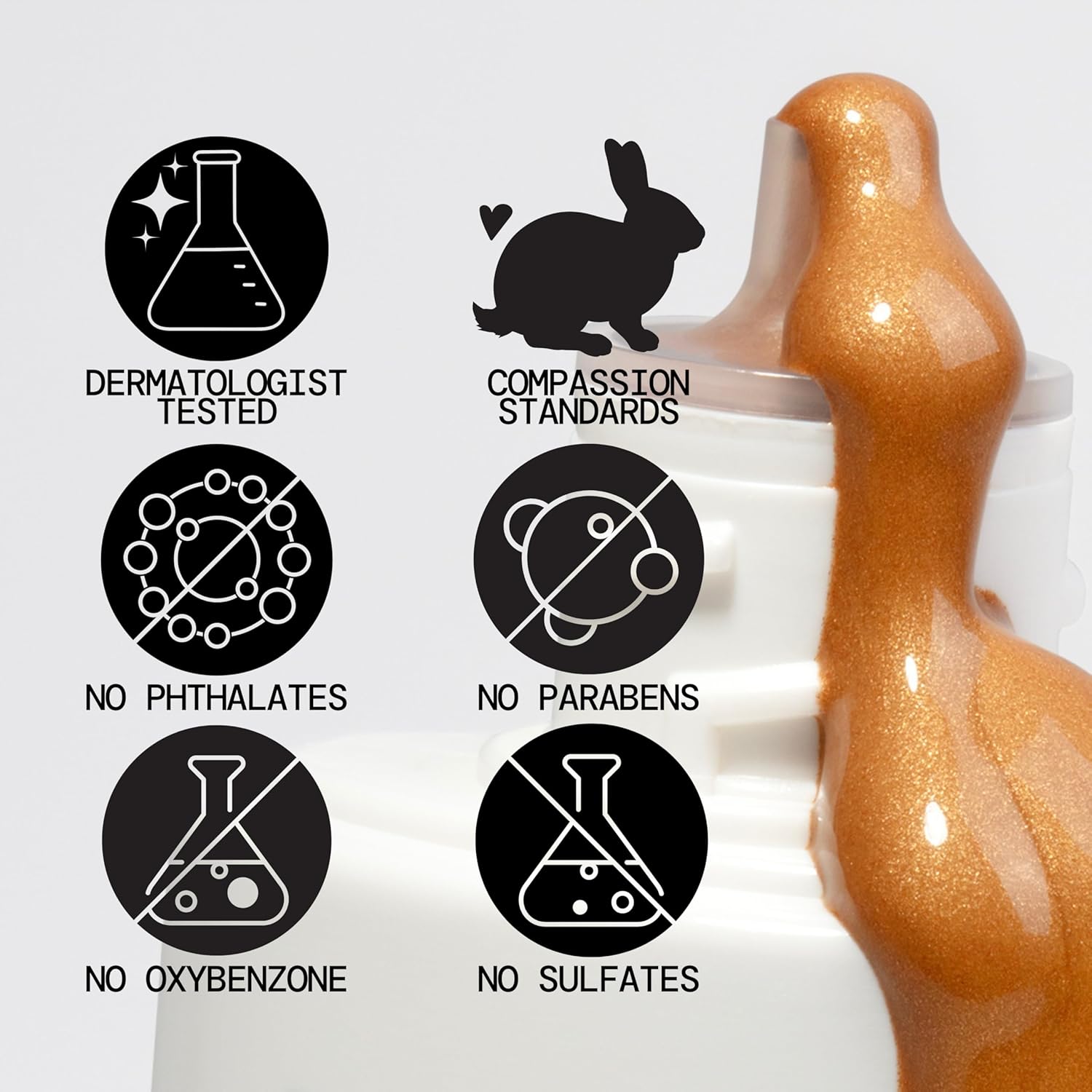 - Instant Sun-Kissed Glow: Get a bronzed, vacation-like glow in seconds with these Sunny Glow Liquid Bronzing Drops. The lightweight liquid formula delivers a natural sun-kissed tint to your face without any sun damage or orange streaks. Just a few drops give you a buildable tan glow that you can customize â from a subtle warm radiance to a deeper bronze. Itâs like bottled sunshine for your skin, perfect for achieving a healthy-looking tan year-round.