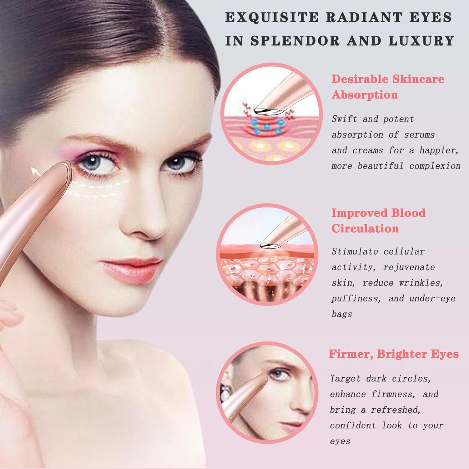 - 【Compact Design for Convenience】With its small and handy design, our rose gold eye massager wand for dark circles and puffiness is easy to carry and use anywhere, anytime. It's a portable solution to address your skin's needs on the go.