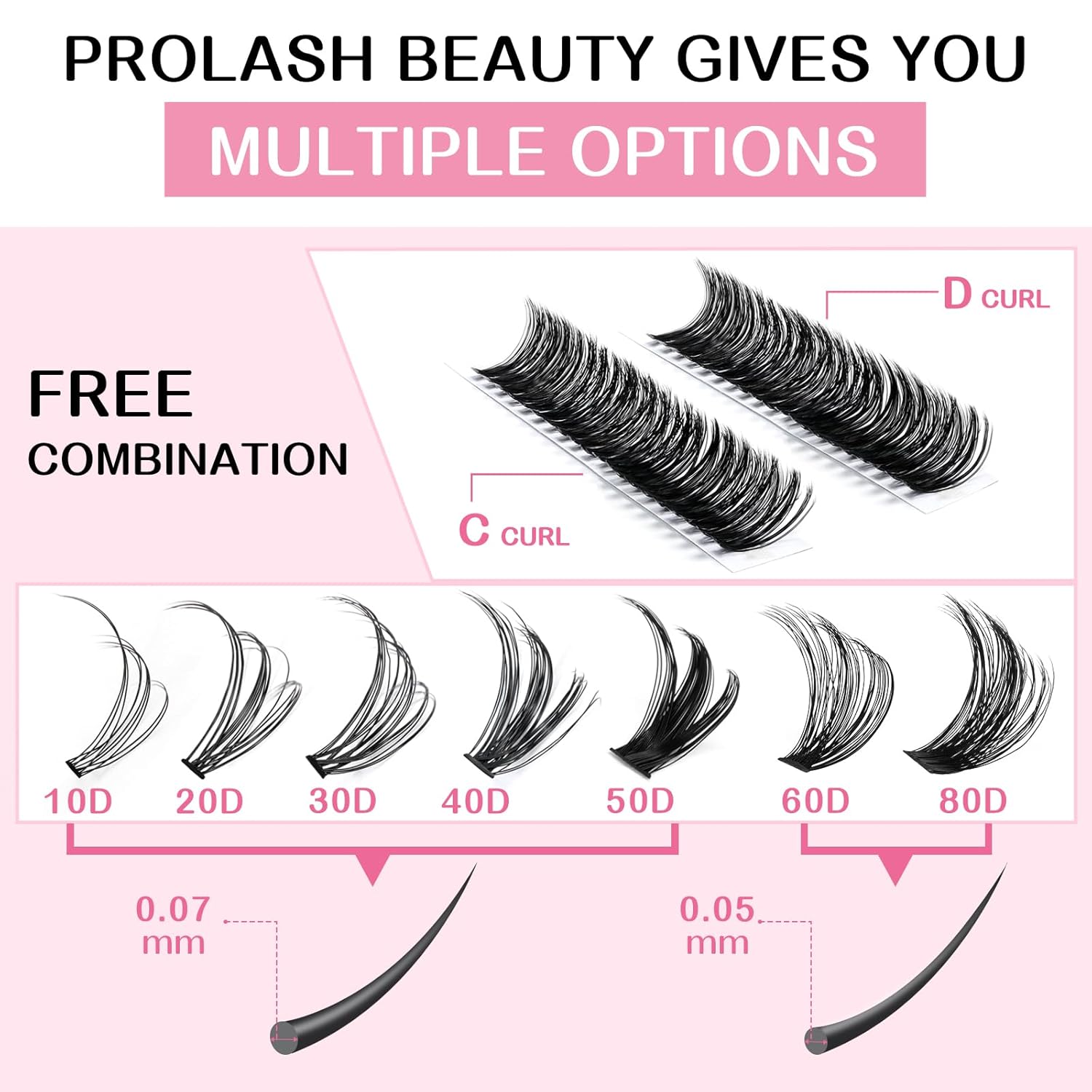 - Unique: The now very popular individual lashes are now available in PRO LashBeauty, and it is especially worth highlighting that PRO LashBeauty can provide 280 lashes in one tray! The blended lengths range from 8mm to 16mm, curls include C and D, and there are also have30D, 40D, 50D,30D+40D, 40D+50D.