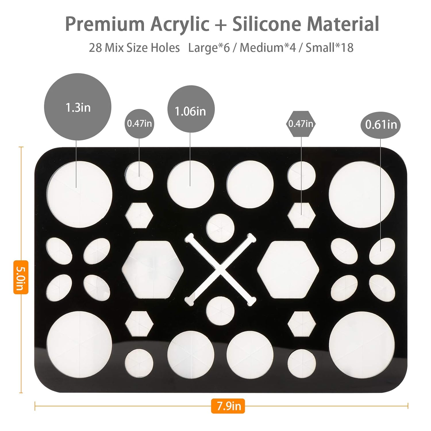 - 28 slots with various sizes for holding all types of brushes. Small, medium and large. No worries about them falling out. And also work for artist brushes, nail acrylic brushes, paintbrushes and so on, very practical