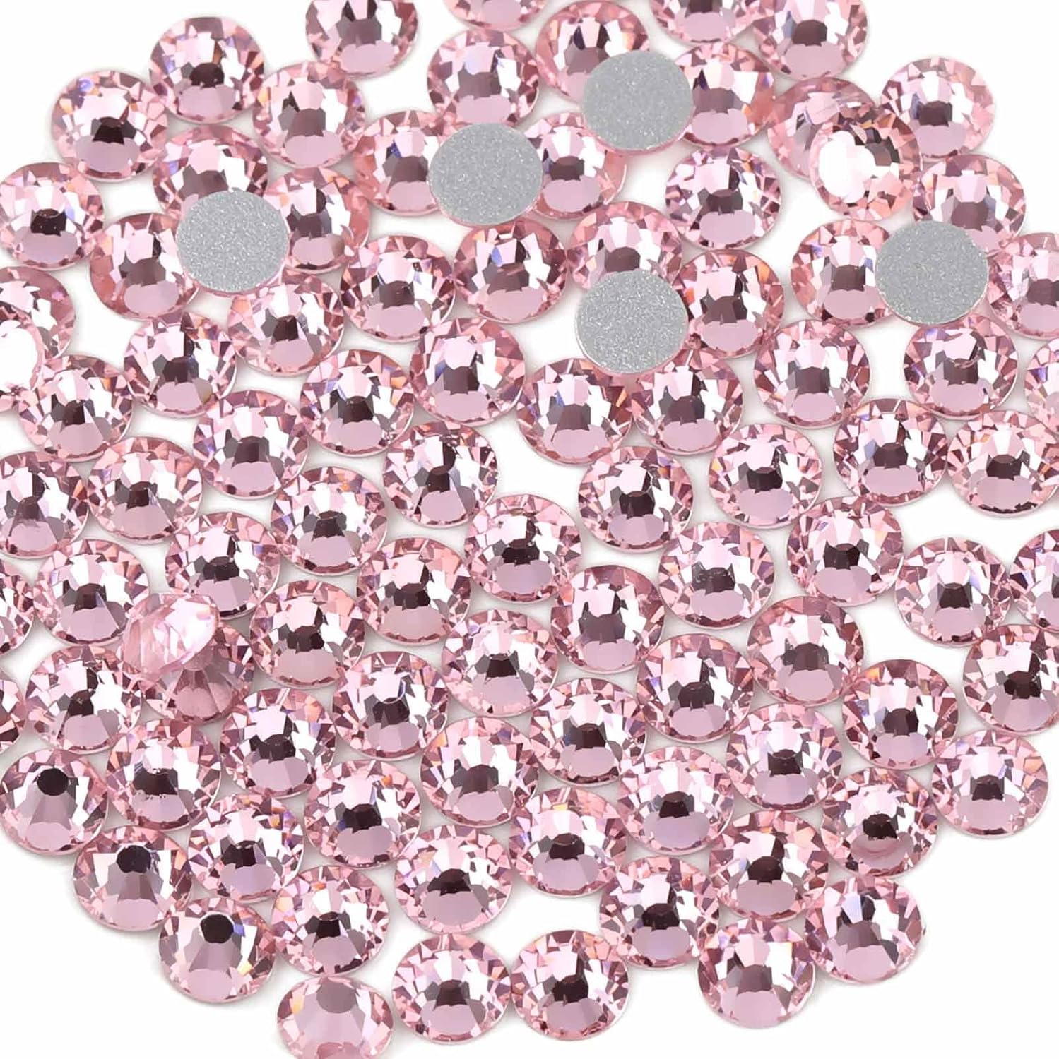 Beadsland 288pcs Flat Back Crystal Rhinestones Round Gems for Nail Art and Craft Glue Fix, Light Pink, SS34,7.1-7.3mm