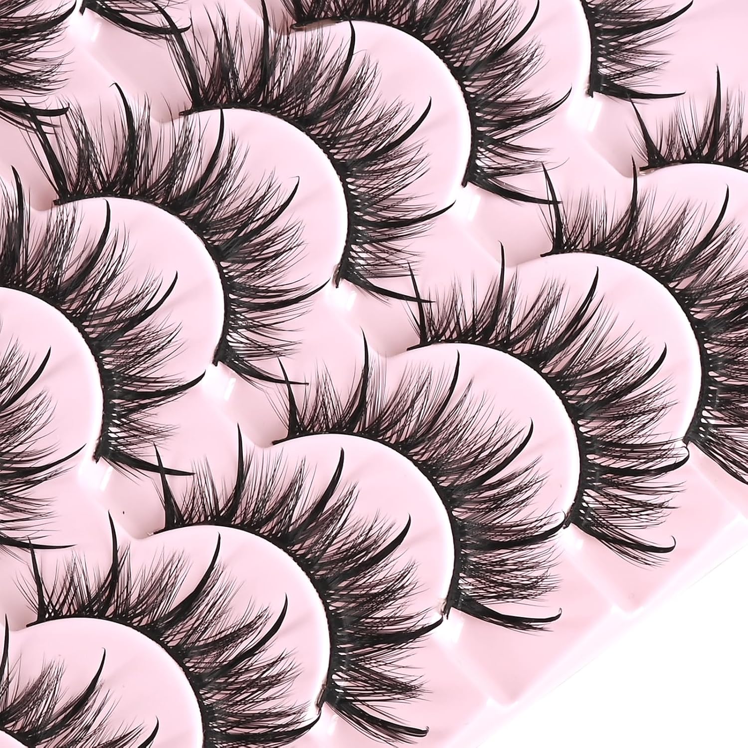 FARRED Wispy Lashes Hybrid Mink Eyelashes 14 Pairs Short Cat Eye Natural Fluffy False Eyelashes Faux Mink Strip Eye Lashes Pack for Daily Makeup (F17 | 8-16 mm)