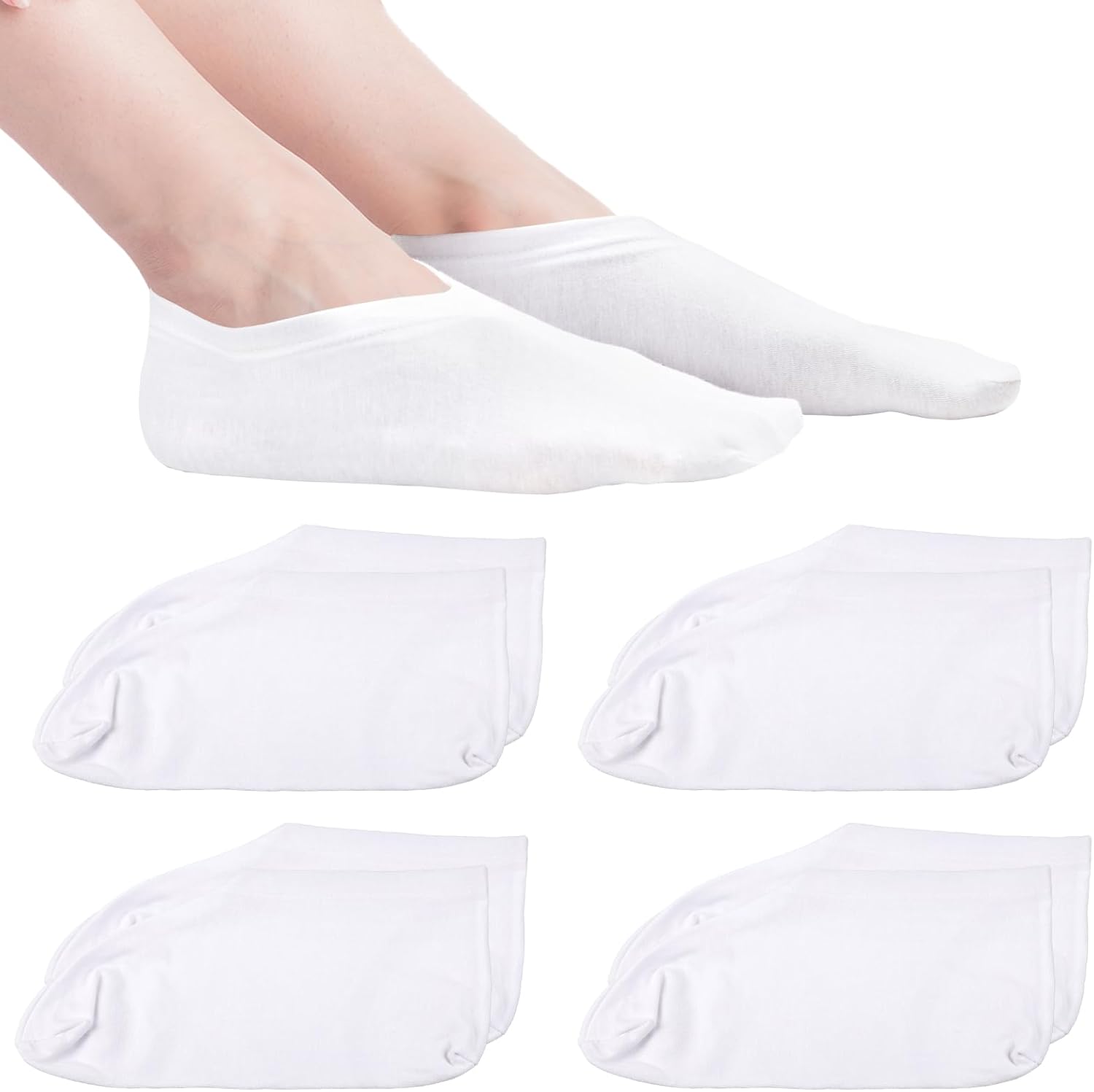 BLMHTWO 4 Pairs Moisturizing Socks, Overnight Foot Care, For Dry Cracked Feet, White Cotton