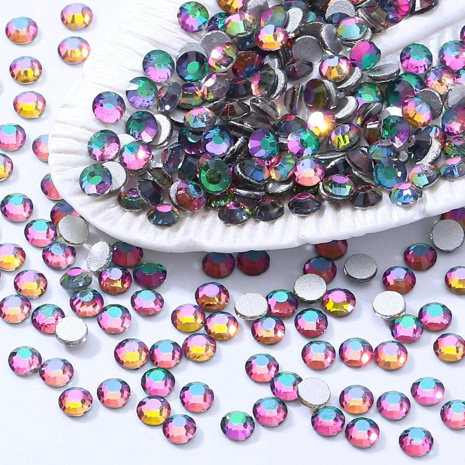 Green Volcano Flatback Rhinestones, Glass Rhinestones for Nail Art and Craft, Glue Fix, Loose Crystal Gemstones(Green Volcano, SS12, 1440pcs, 2.9-3.0mm)