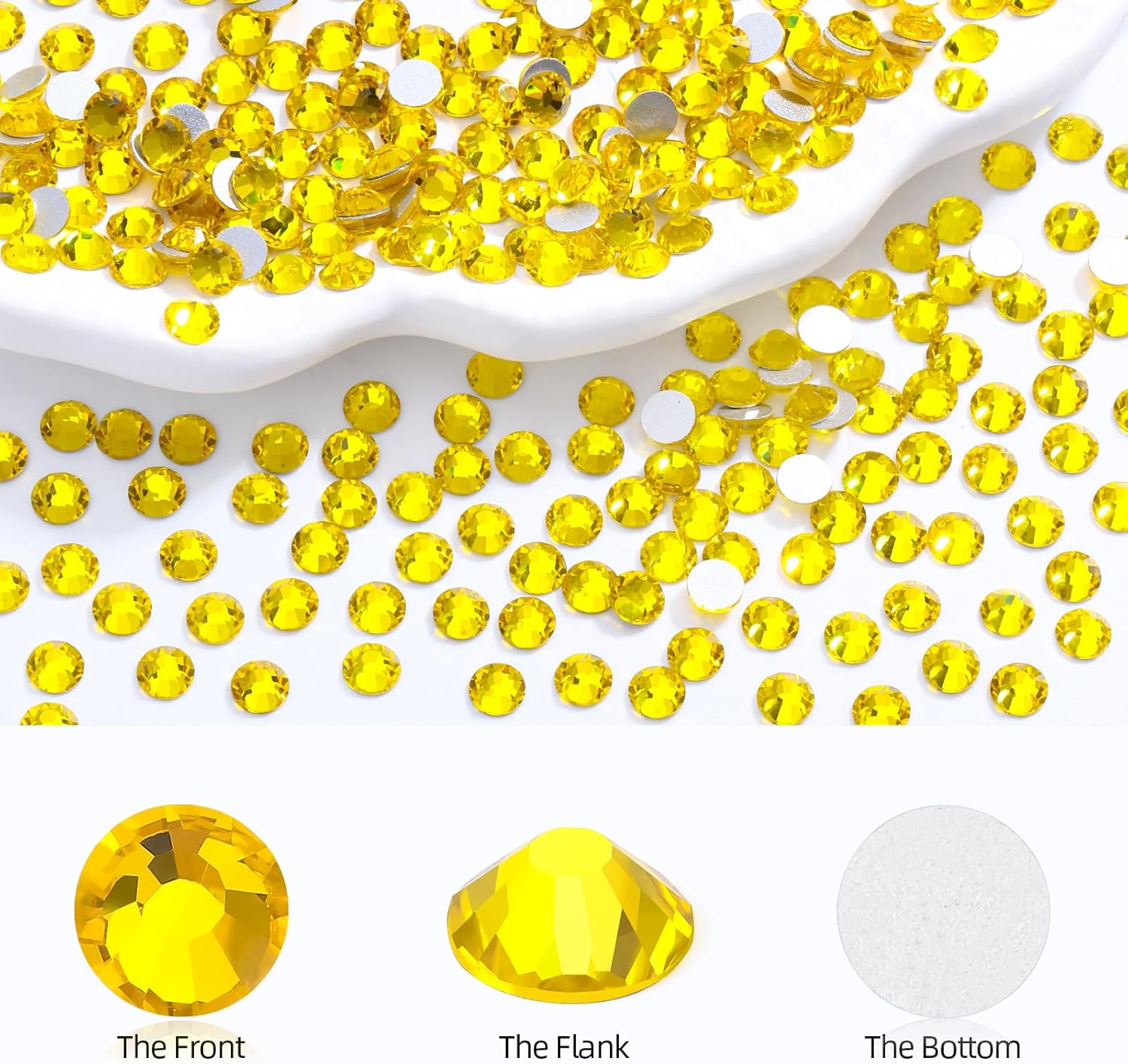 Citrine Flatback Rhinestones, Glass Rhinestones for Nail Art and Craft, Glue Fix, Loose Crystal Gemstones(Yellow, SS6, 1440pcs, 1.9-2.0mm)