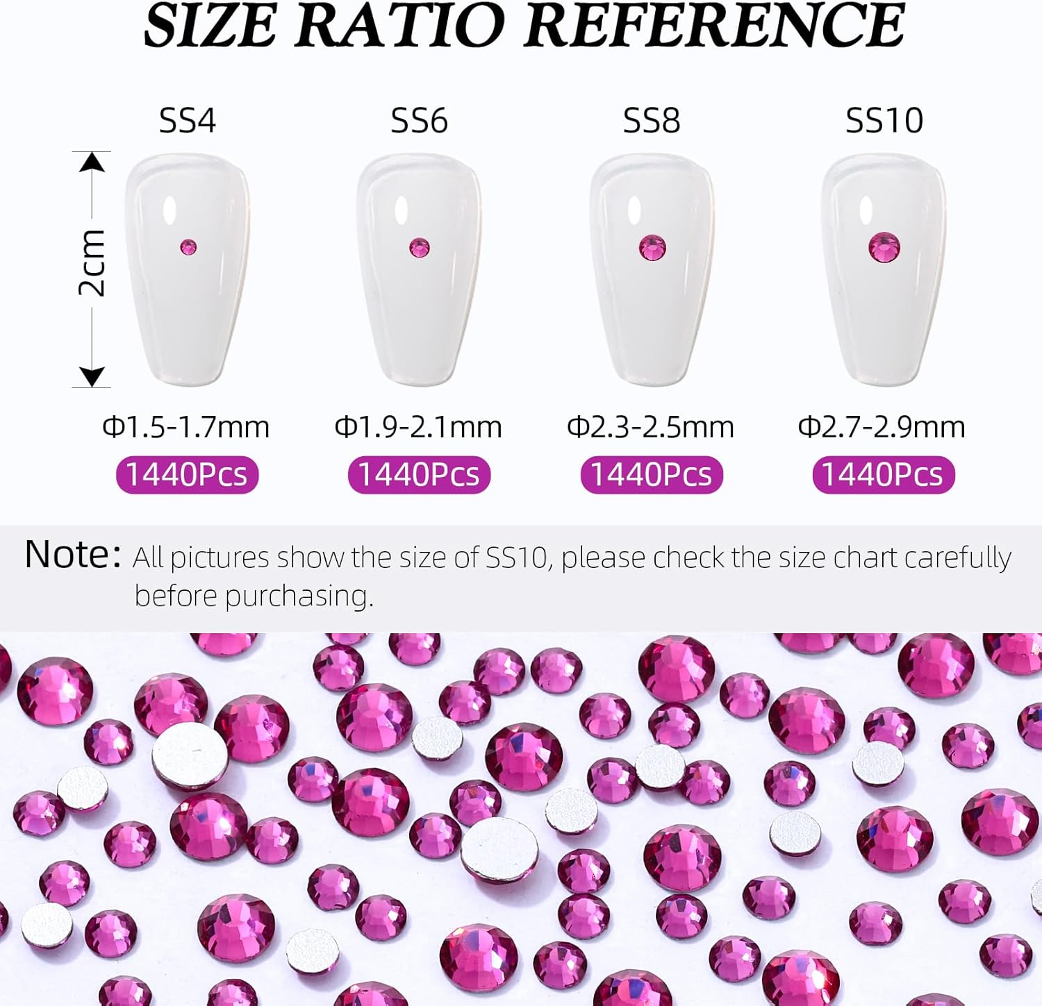 - Product Packaging: Bags packaging SS8 2.3~2.5 MM - 1440 Pcs fuchsia flatback rhinestones