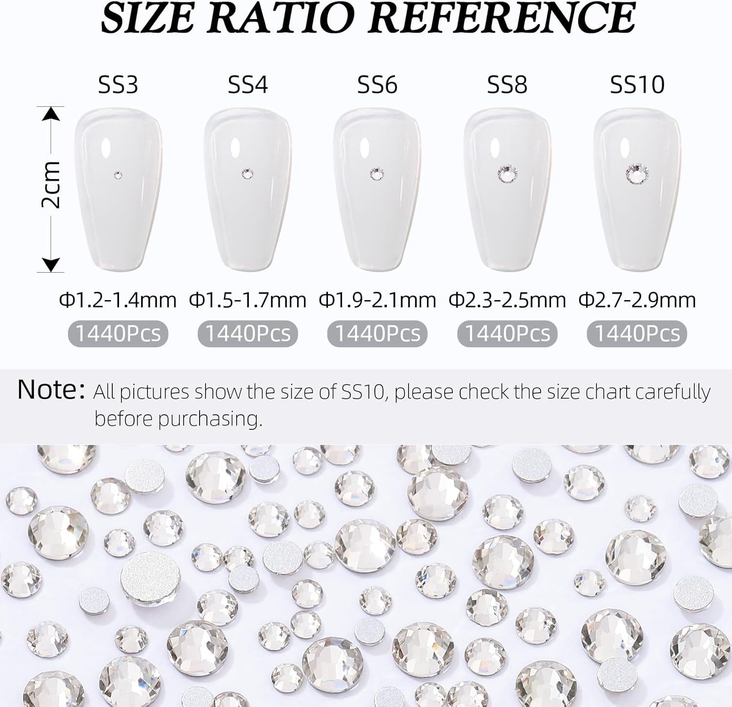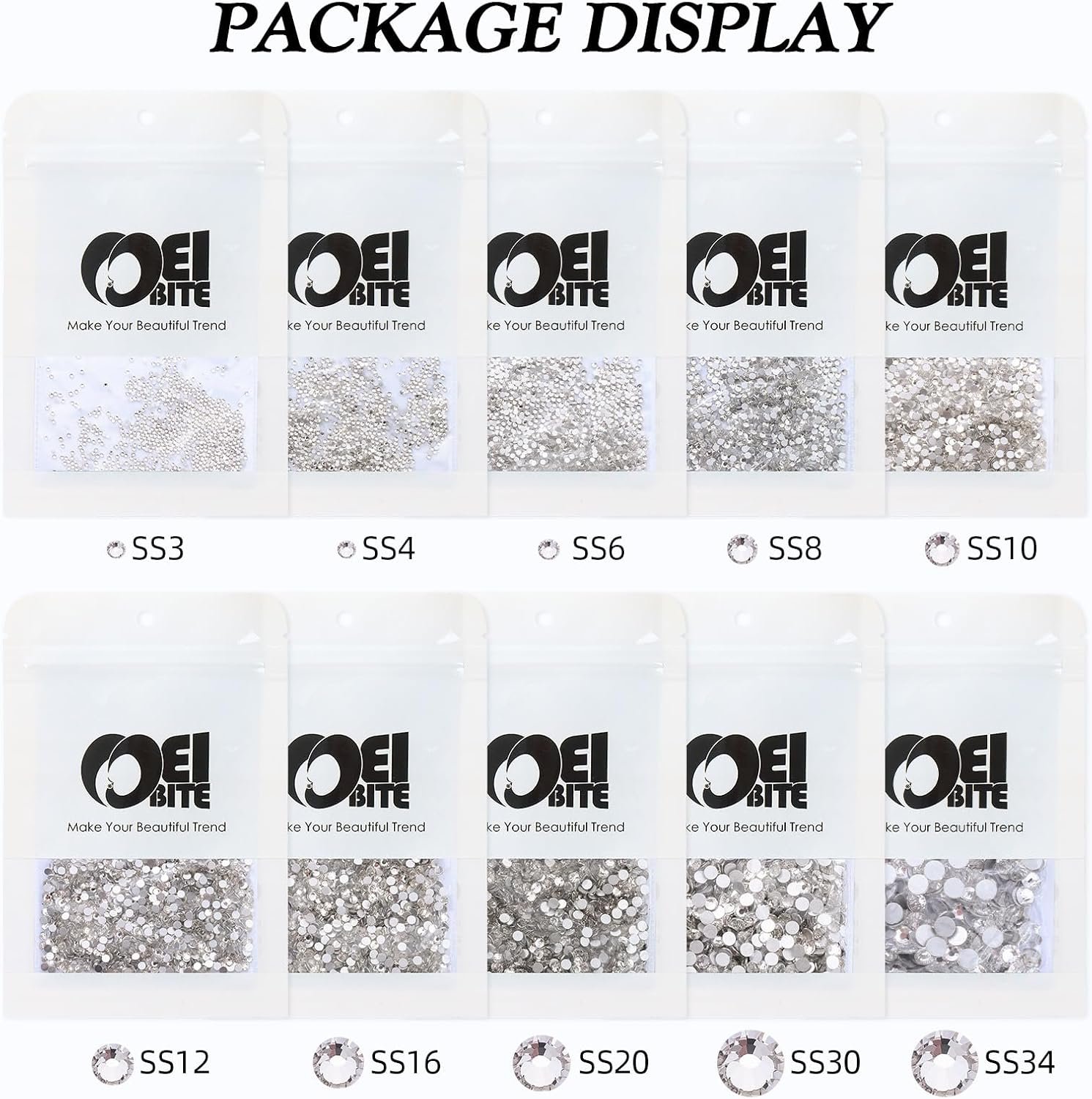 - Product Packaging: Bags packaging SS3 1.3~1.4 MM - 1440 Pcs crystal clear flatback rhinestones