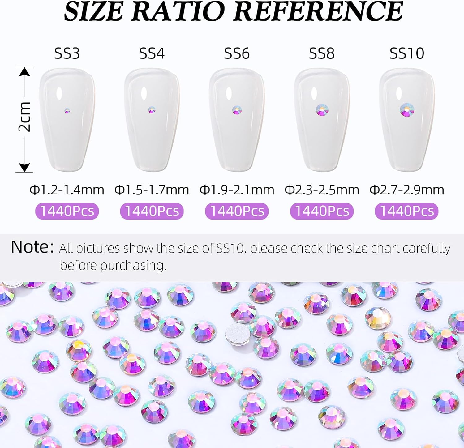 Crystal AB Flatback Rhinestones, Glass Rhinestones for Nail Art and Craft, Glue Fix, Loose Crystal Gemstones(Crystal AB, SS6, 1440pcs, 1.9-2.0mm)