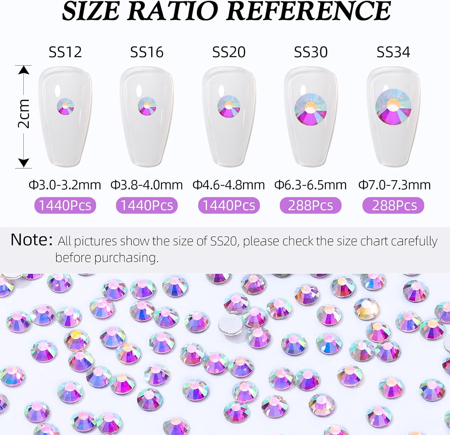 Crystal AB Flatback Rhinestones, Glass Rhinestones for Nail Art and Craft, Glue Fix, Loose Crystal Gemstones(Crystal AB, SS20, 1440pcs, 4.6-4.8mm)