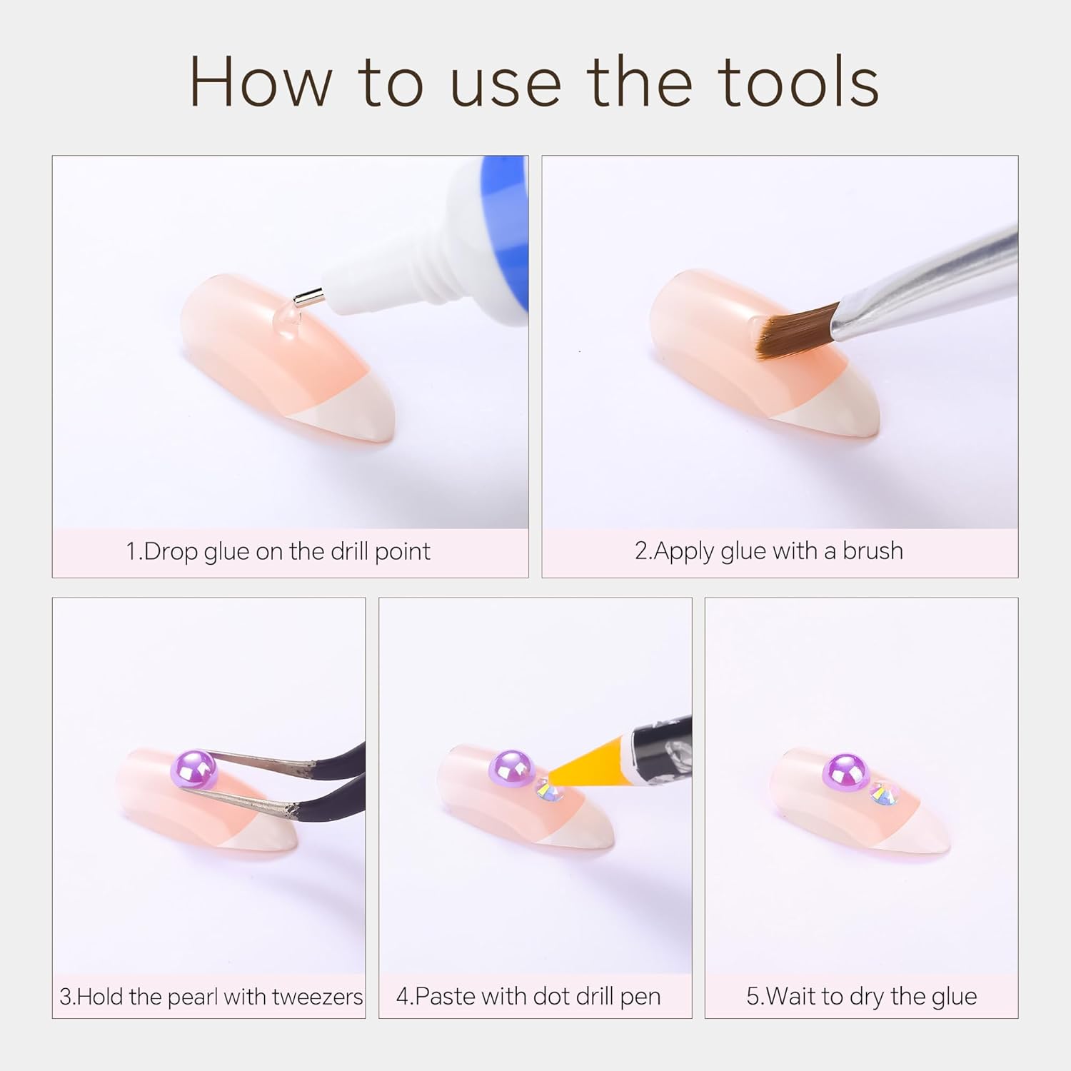 - Useful tools - These pearls and rhinestones have a flat back, which is excellent for easy placement.and you can pick up any large or small pearls and rhinestones with the crayons we bring along. And use the brush to smooth out the Gel, these tools will work very well