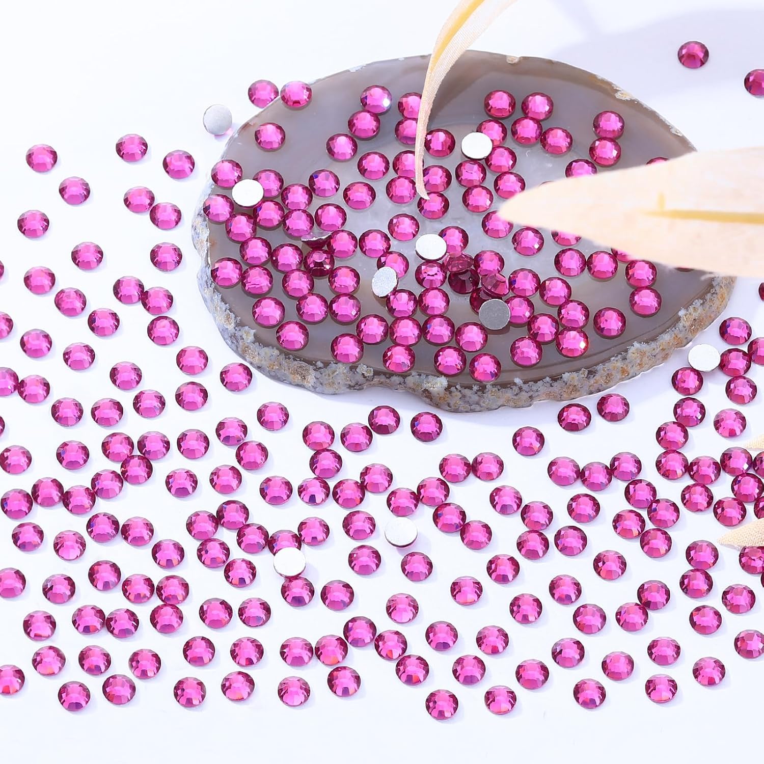 Fuchsia Flatback Rhinestones, Glass Rhinestones for Nail Art and Craft, Glue Fix, Loose Crystal Gemstones(Fuchsia, SS16, 2880pcs, 3.8-4.0mm)