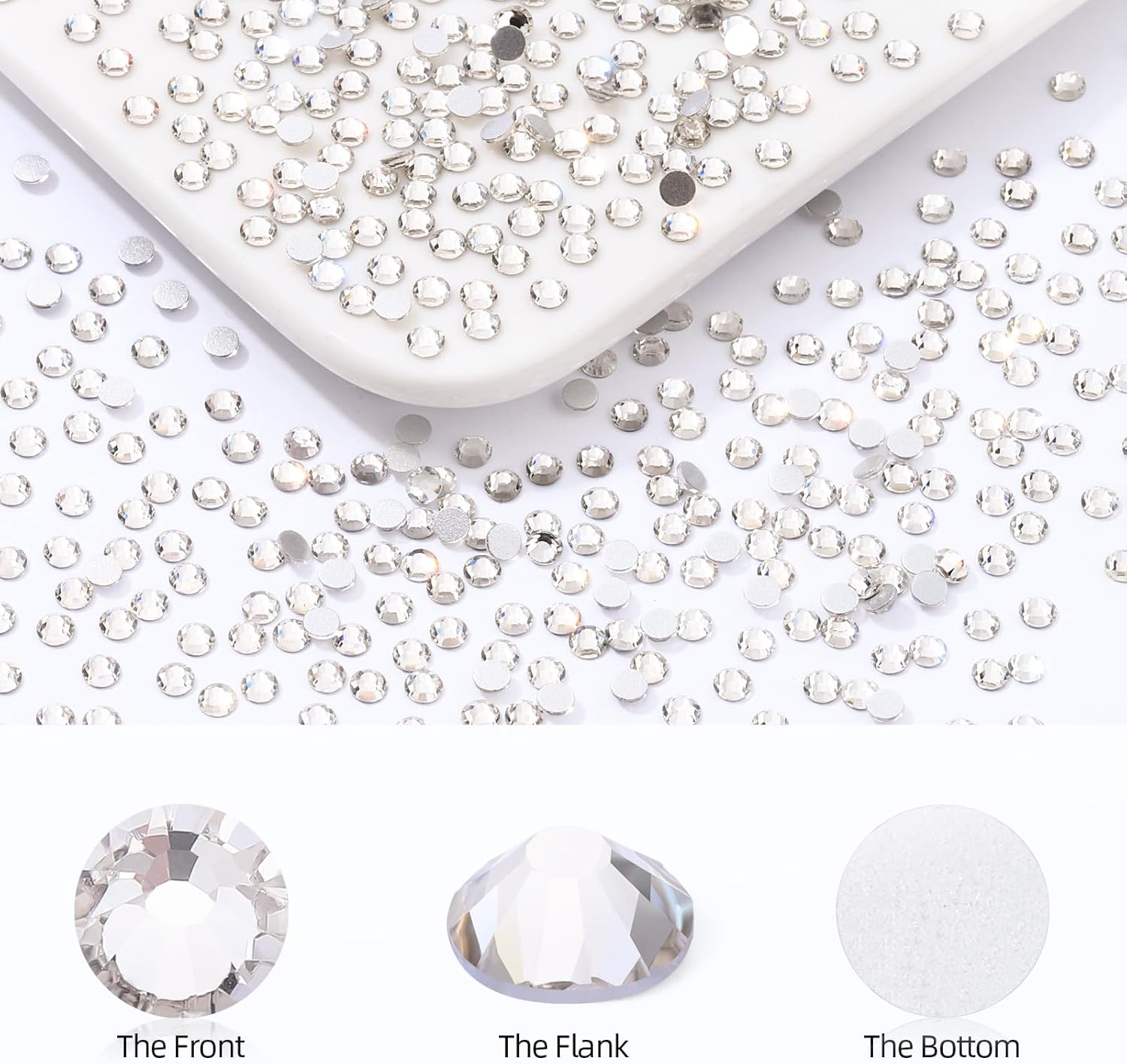 Crystal Clear Flatback Rhinestones, Glass Rhinestones for Nail Art and Craft, Glue Fix, Loose Crystal Gemstones(Crystal, SS10, 2880pcs, 2.7-2.8mm)