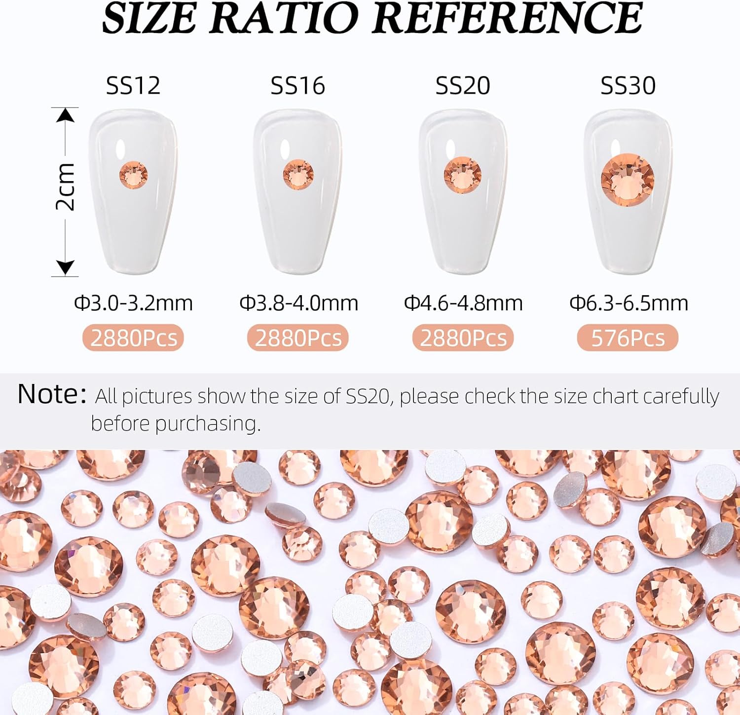 Champagne Flatback Rhinestones, Glass Rhinestones for Nail Art and Craft, Glue Fix, Loose Crystal Gemstones(Champagne, SS20, 2880pcs, 4.6-4.8mm)