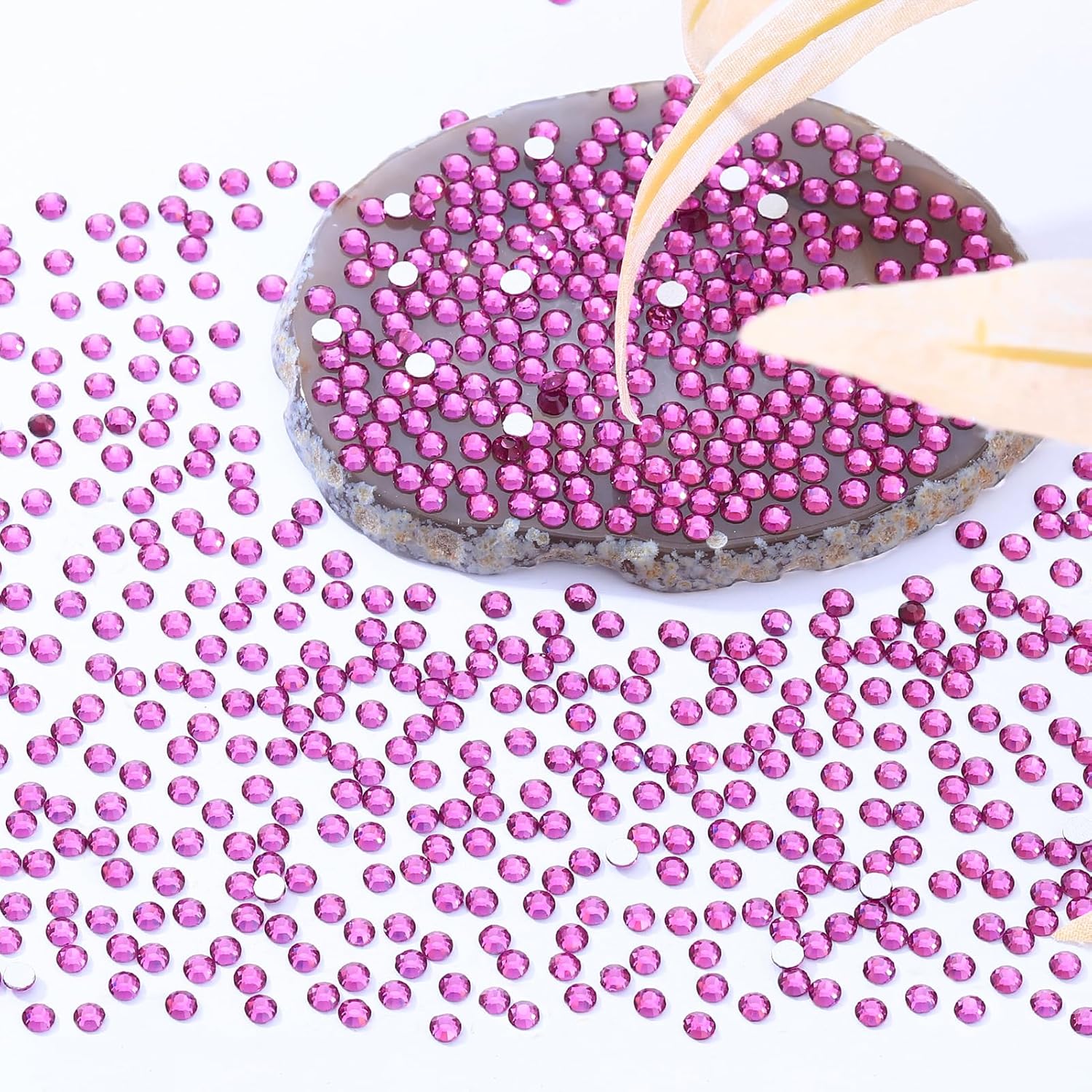 Fuchsia Flatback Rhinestones, Glass Rhinestones for Nail Art and Craft, Glue Fix, Loose Crystal Gemstones(Fuchsia, SS8, 2880pcs, 2.3-2.5mm)