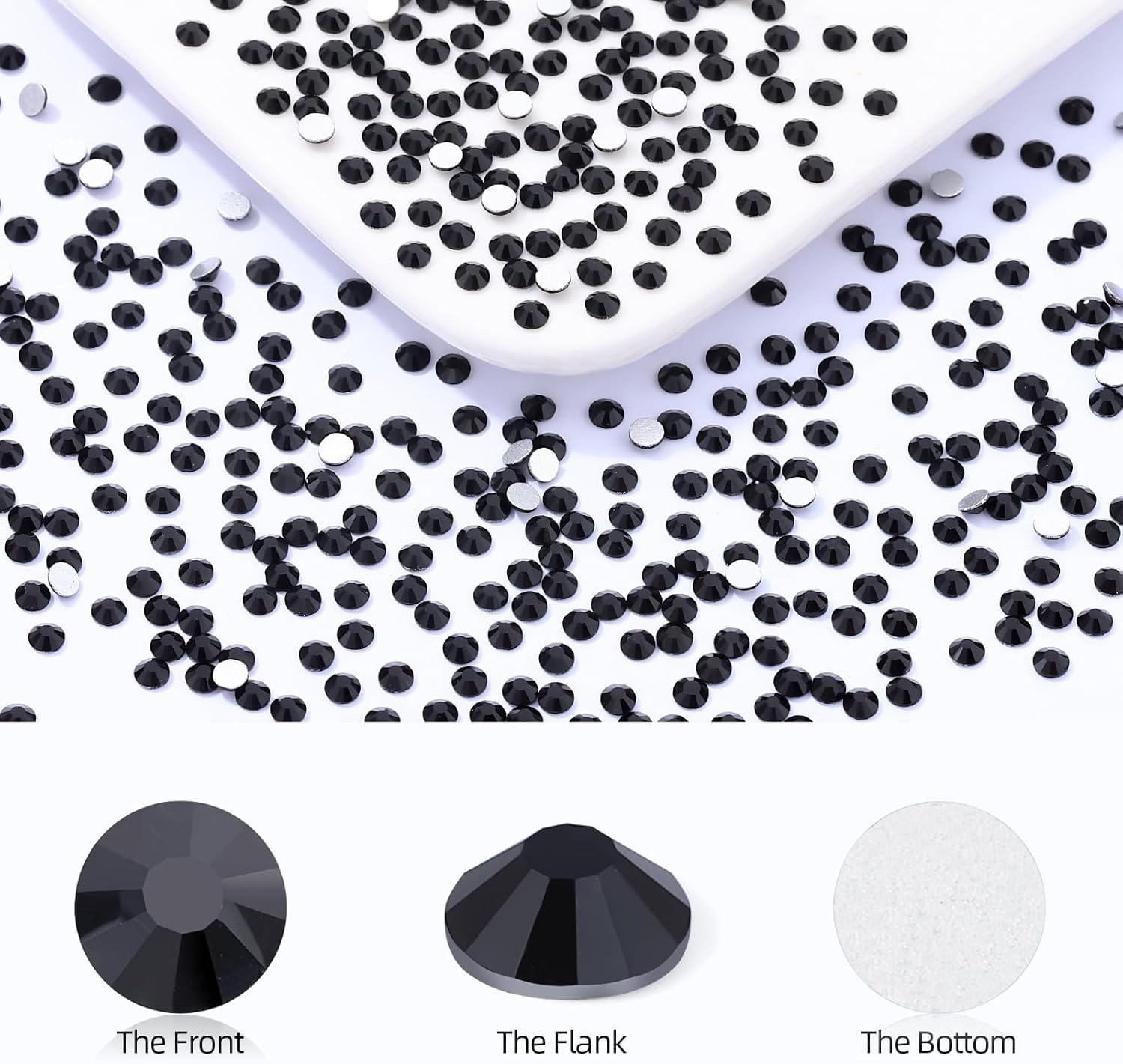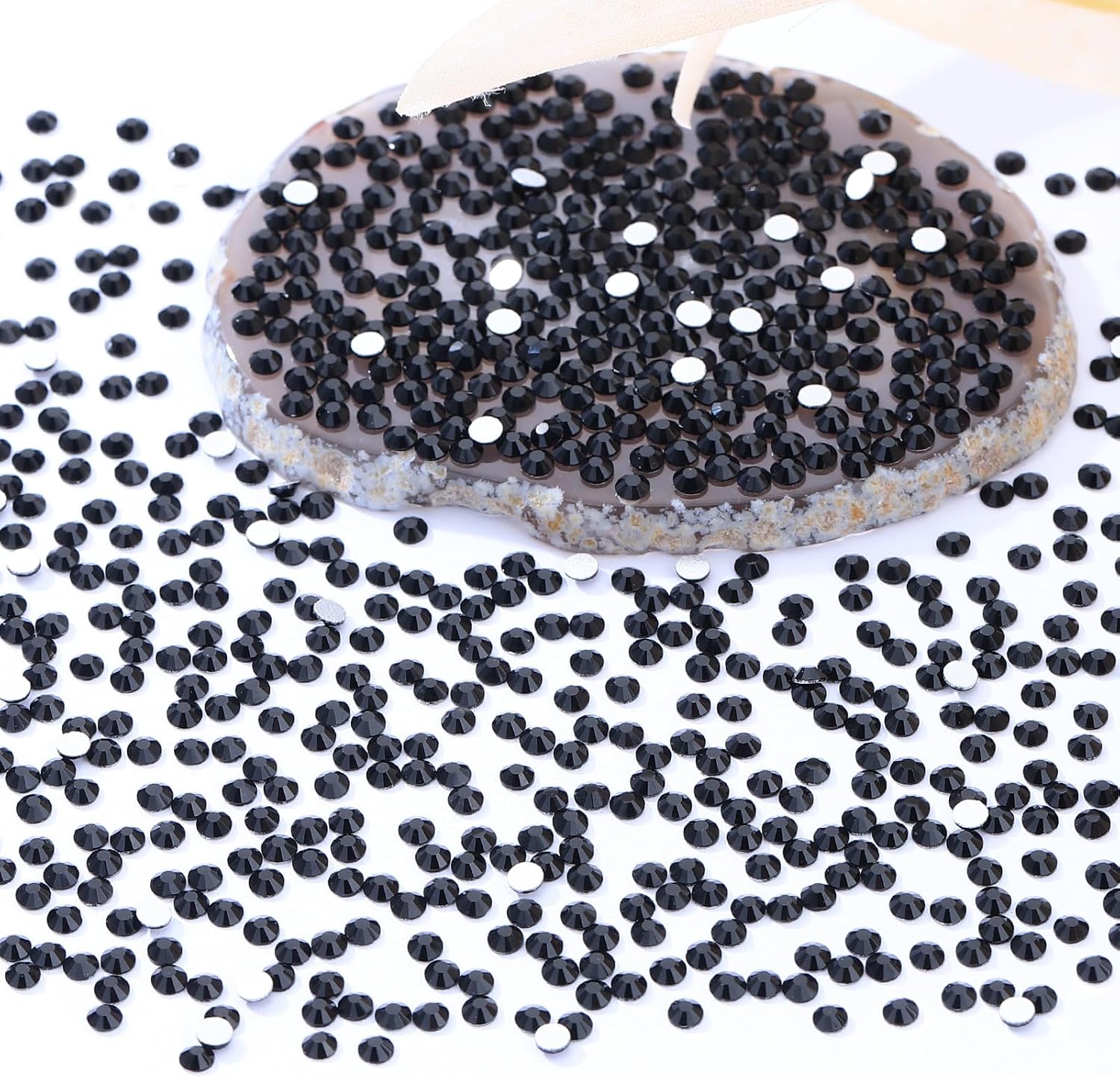 Black Flatback Rhinestones, Glass Rhinestones for Nail Art and Craft, Glue Fix, Loose Crystal Gemstones(Black, SS4, 2880pcs, 1.5-1.7mm)