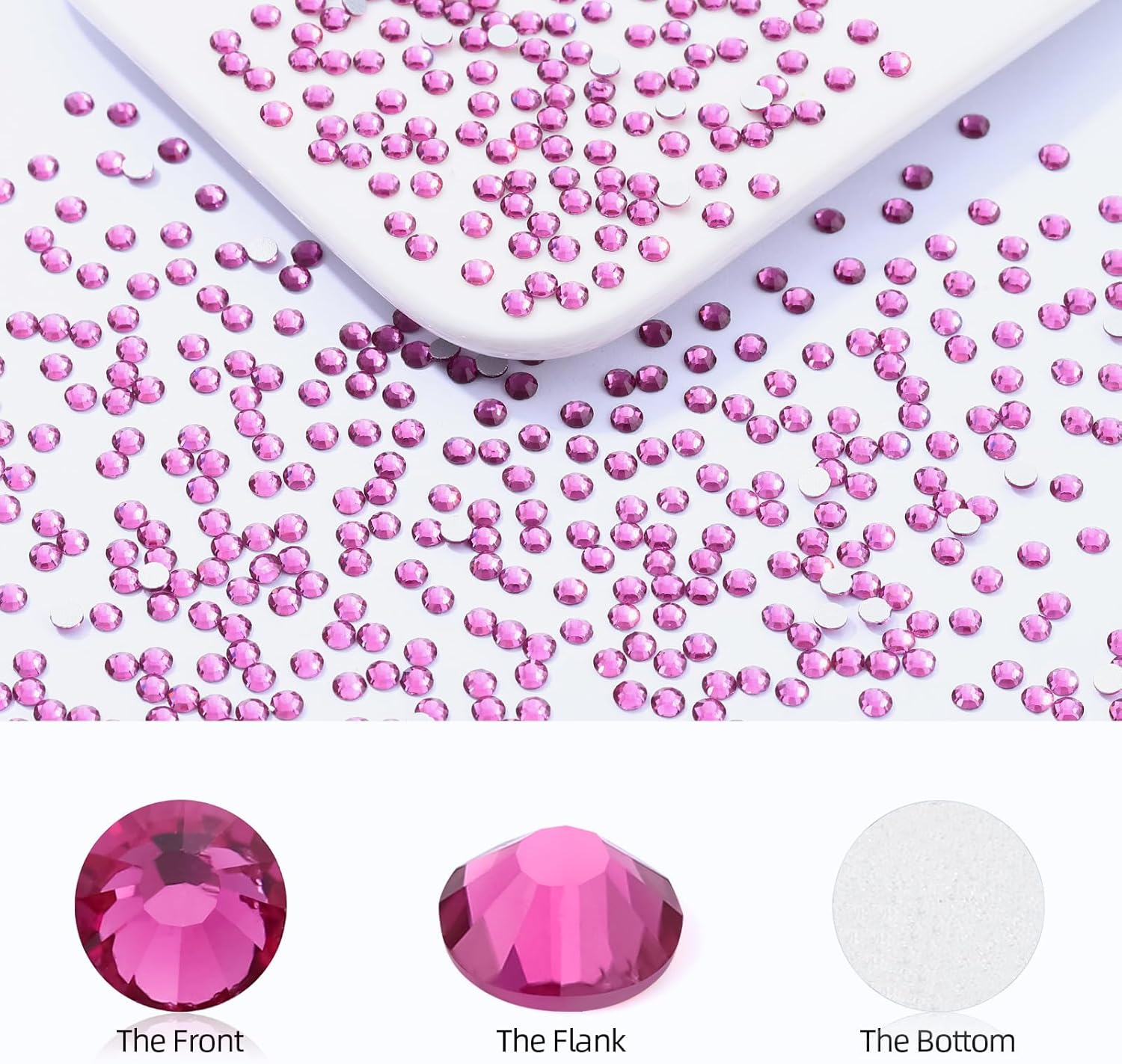 Fuchsia Flatback Rhinestones, Glass Rhinestones for Nail Art and Craft, Glue Fix, Loose Crystal Gemstones(Fuchsia, SS4, 2880pcs, 1.5-1.7mm)