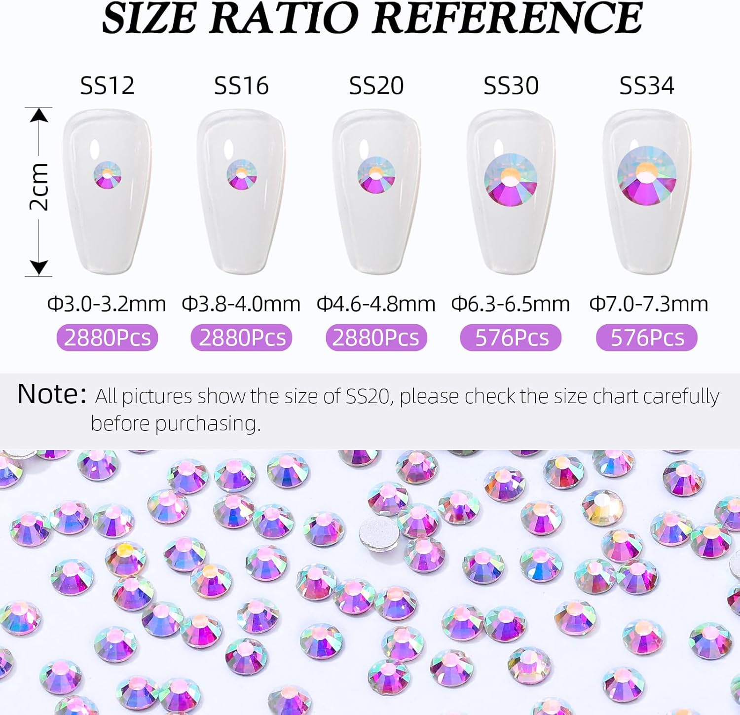 Crystal AB Flatback Rhinestones, Glass Rhinestones for Nail Art and Craft, Glue Fix, Loose Crystal Gemstones(Crystal AB, SS12, 2880pcs, 2.9-3.0mm)