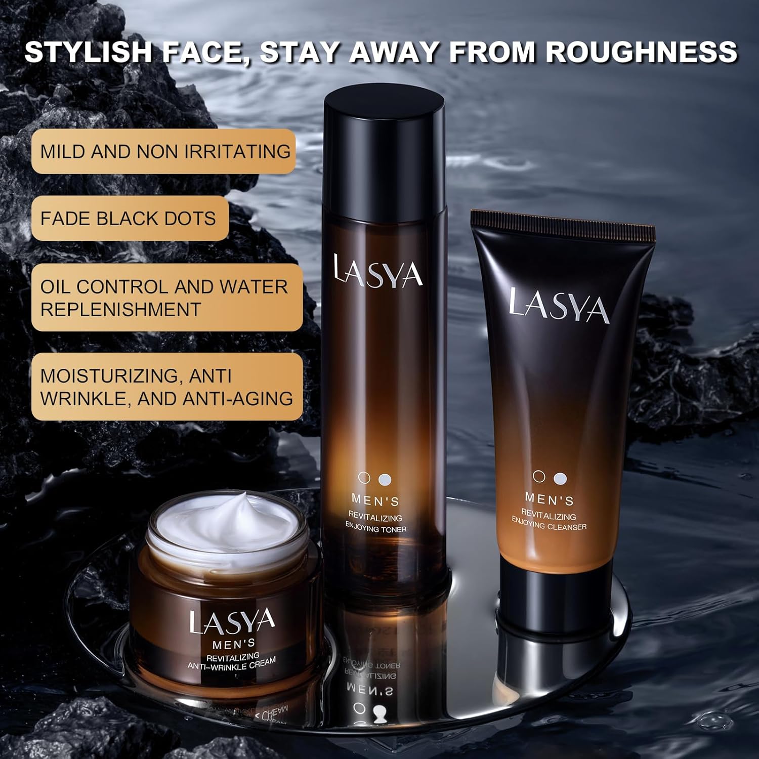 Anti Aging Skin Care Set for Men,Reduce Wrinkles & Hydrate Mens Skin Care Kit Cleanser,Toner,Lotion,Face Cream,Complete Skincare Process for Men Unique Skin Care Sets & Kits(4-Pcs)