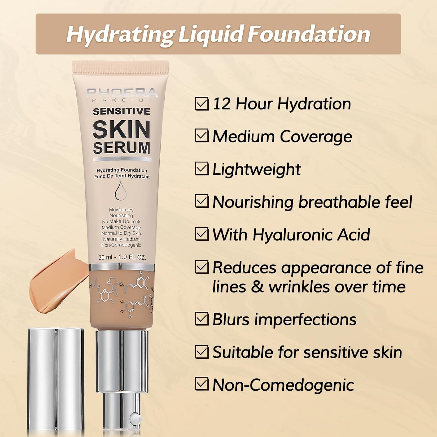 - 【Also Great For Sensitive Skin 】-This new serum foundation is clean, cruelty-free . The lightweight, oil-free formula is non-comedogenic so it won't clog pores and is friendly to sensitive skin.