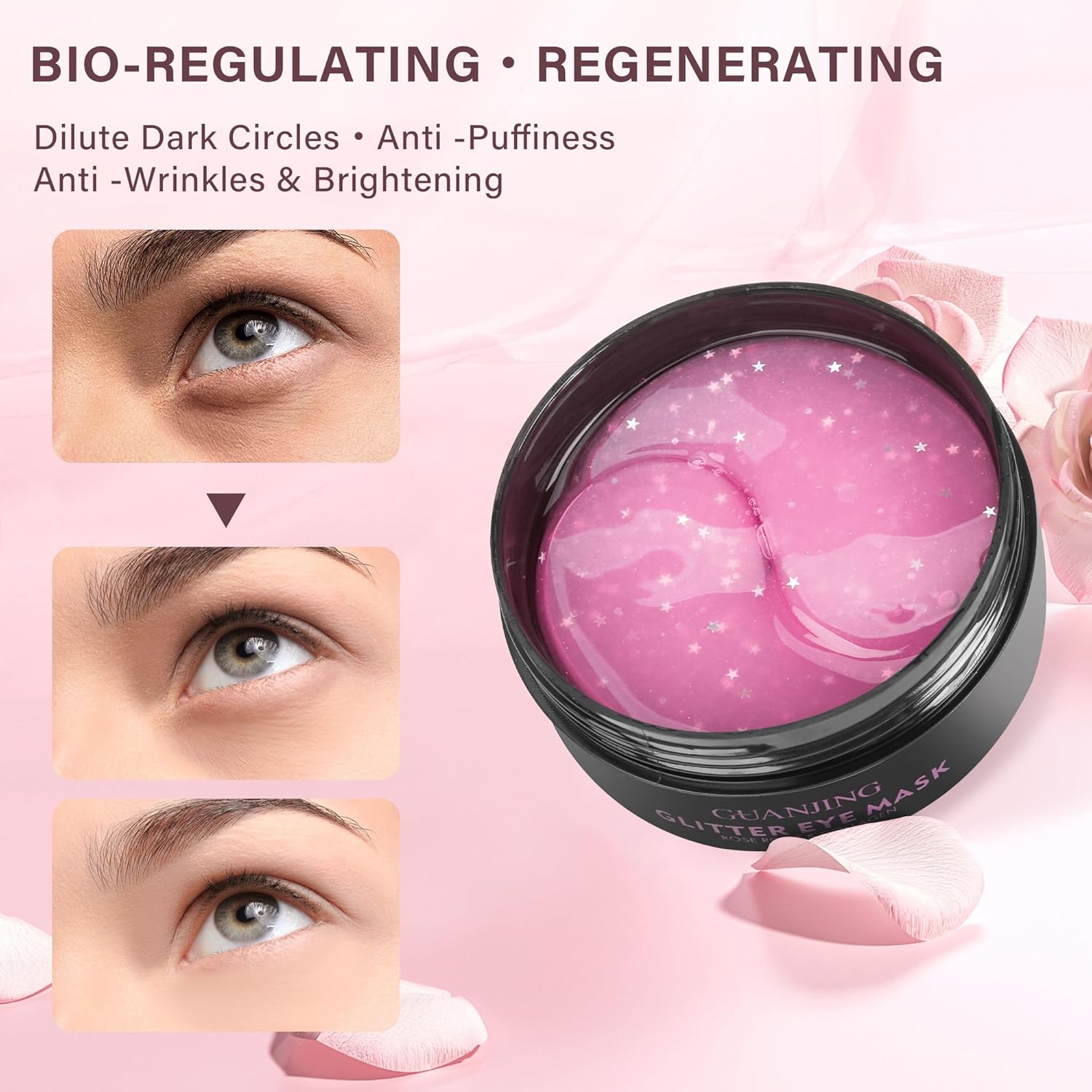 Caffeine Under Eye Masks for Dark Circles (60 Pairs),Puffiness and Eye Fatigue,Shimmering Eye Masks with Hyaluronic Acid Niacinamide, For Women and Men,Anti-Aging Eye Masks