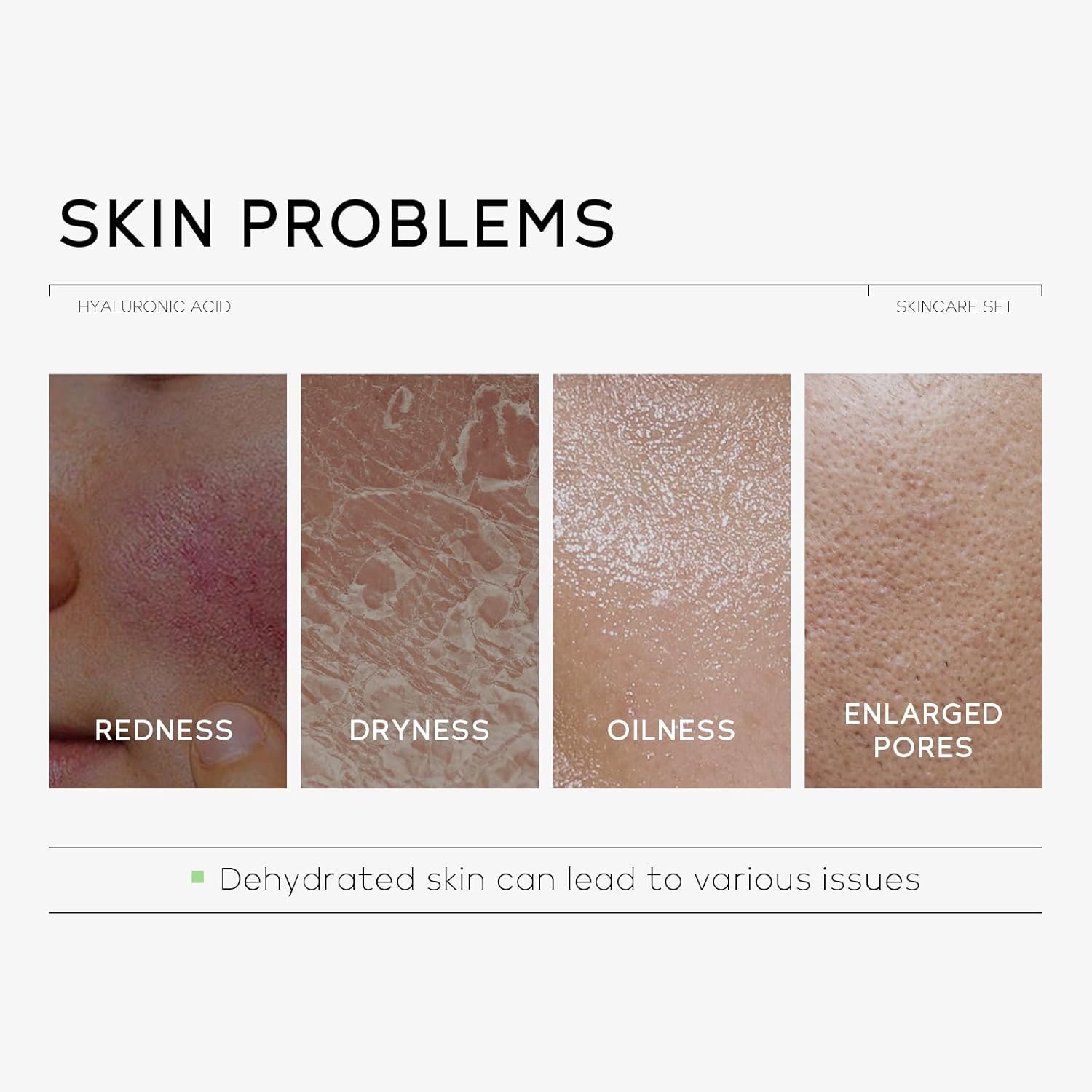 - 【Complete Hydration】Experience flawless hydration with the Quiyum Hyaluronic Acid Skin Care Set, expertly crafted for women and teen girls. Specifically designed to repair and rejuvenate, Quiyum Hydrating Skin Care Set addresses skin dryness and peeling caused by dehydration. It includes Low pH Cleanser, Moisturizer, Serum, and Eye Cream to deeply hydrate and combat signs of aging.