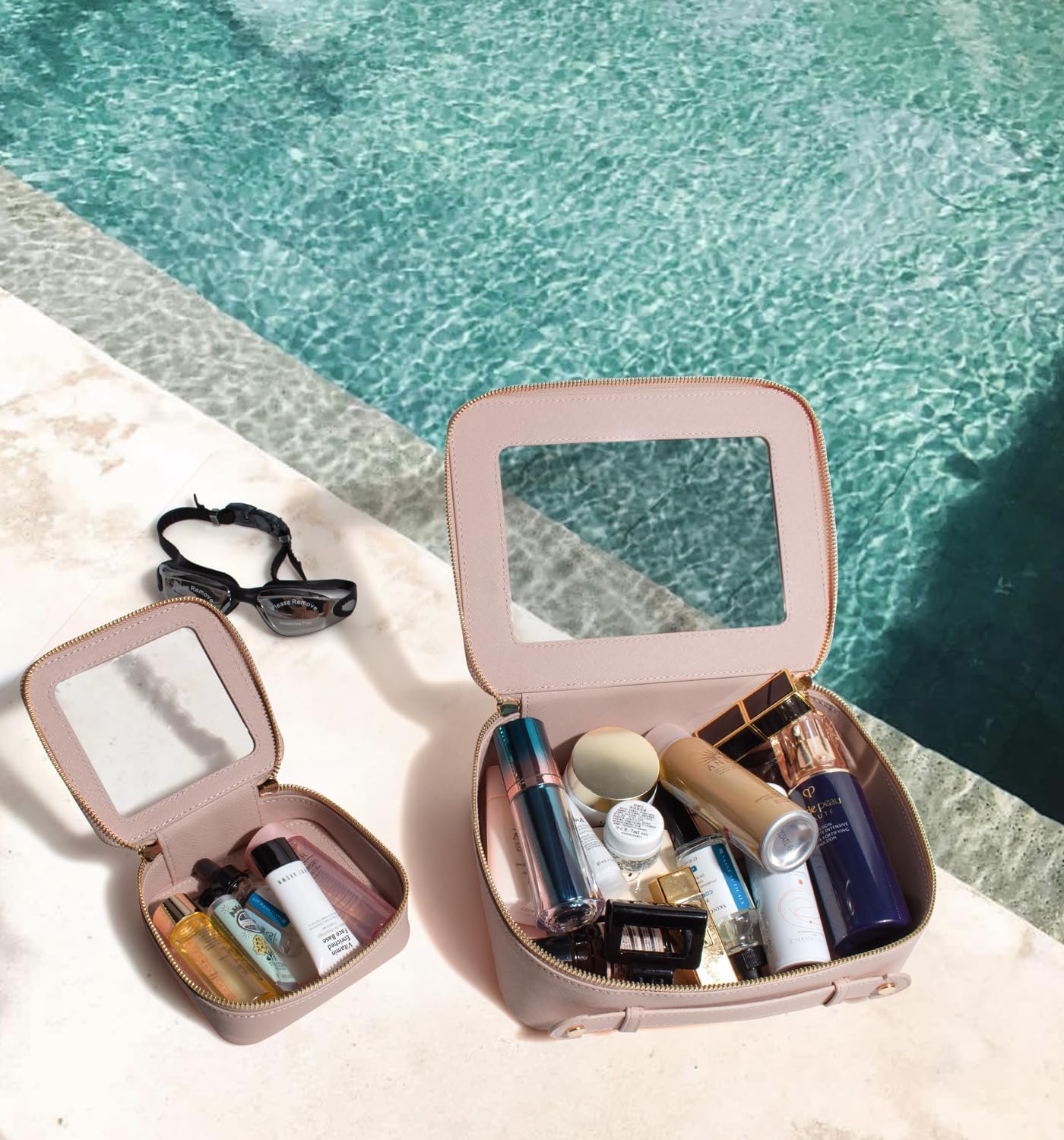 • Clear Design: Our clear toiletry bag set is sleek and minimalistic look for your makeup accessories collection. And is designed with a clear PVC window,all items are clear at a glance, and you can quickly choose the cosmetics you need. Large: 9.44“ x 6.1” x 2.7”, Mini: 5'' x 4.7'' x 2''
