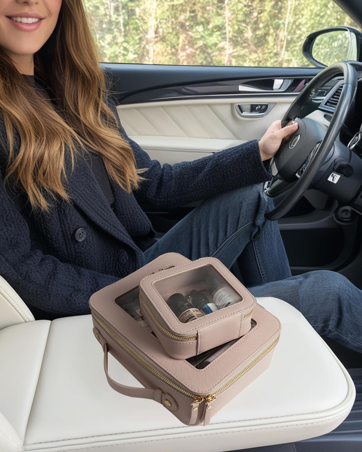 • Car Must Have Essential: The car organizer is roomy to store your makeup, makeup brushes, lipstick, cosmetics, foundation, skin care, cables, chargersor and other items. It can be a good car accessory fits in the center console or other parts of your car