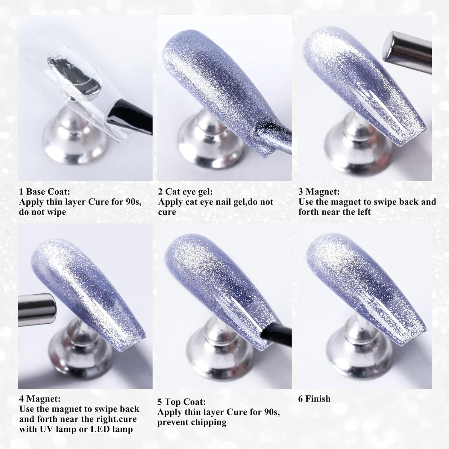 - Tip -This Cat Eye Gel Polish need use magnet to get cat eye effect. And need to apply a base coat, two layers of gel polish, and a top coat for best results.