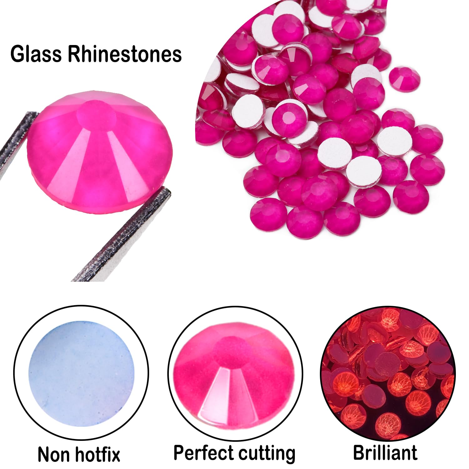 Flatback Glass Rhinestones,Bedazzler Gems 1440pcs Non Hotfix Crystal Rhinestones for Nail Charms Crafts Clothes Tumblers,Hot Pink Neon,SS20
