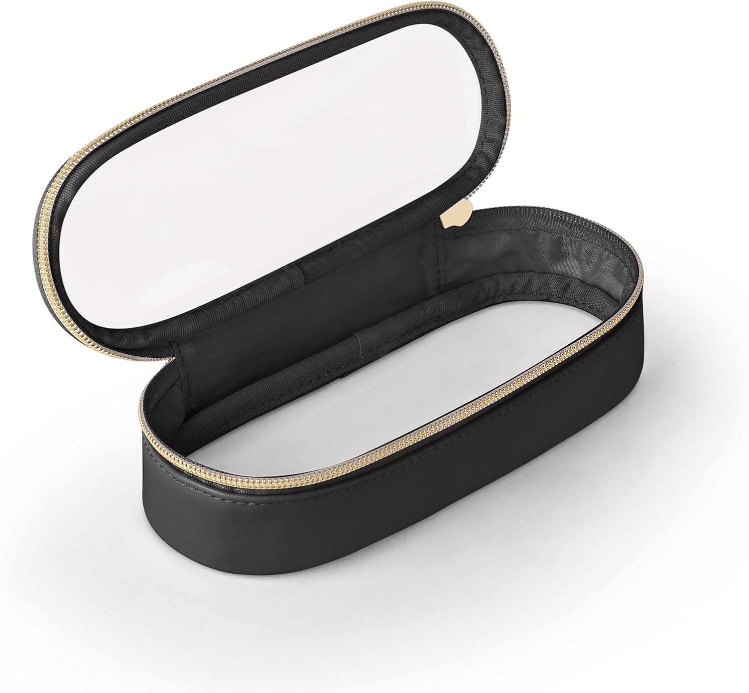 Clear Travel Makeup Brush Holder, Leather Makeup Brush Toiletry Bag, Portable Cosmetic Brush Case, Transparent Waterproof Makeup Brush Storage Bag, Black